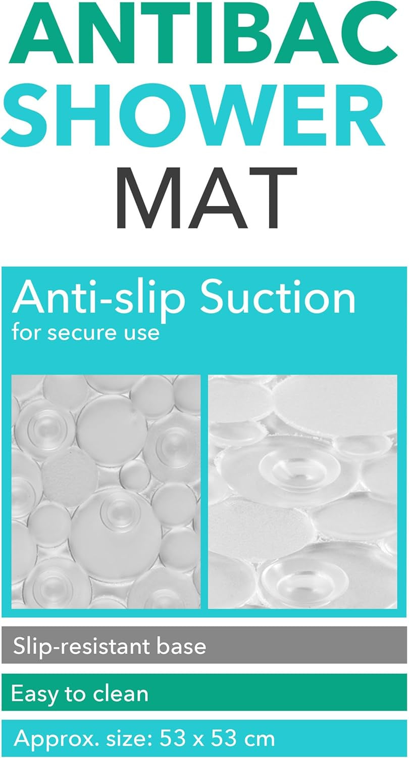 - This Beldray Anti-Bac shower mat is crafted from durable PVC and measures 53 x 53 cm to provide generous coverage in your shower.