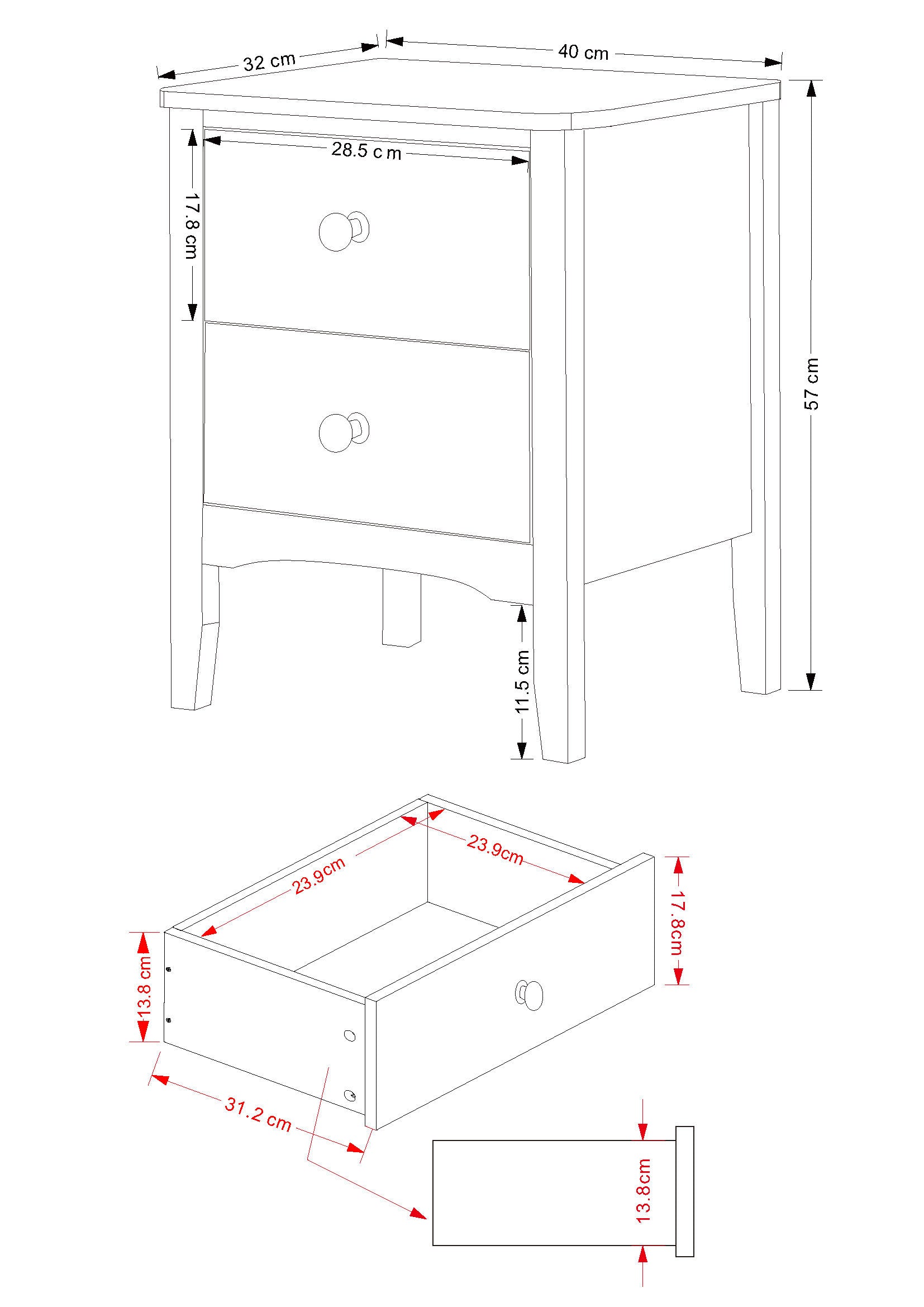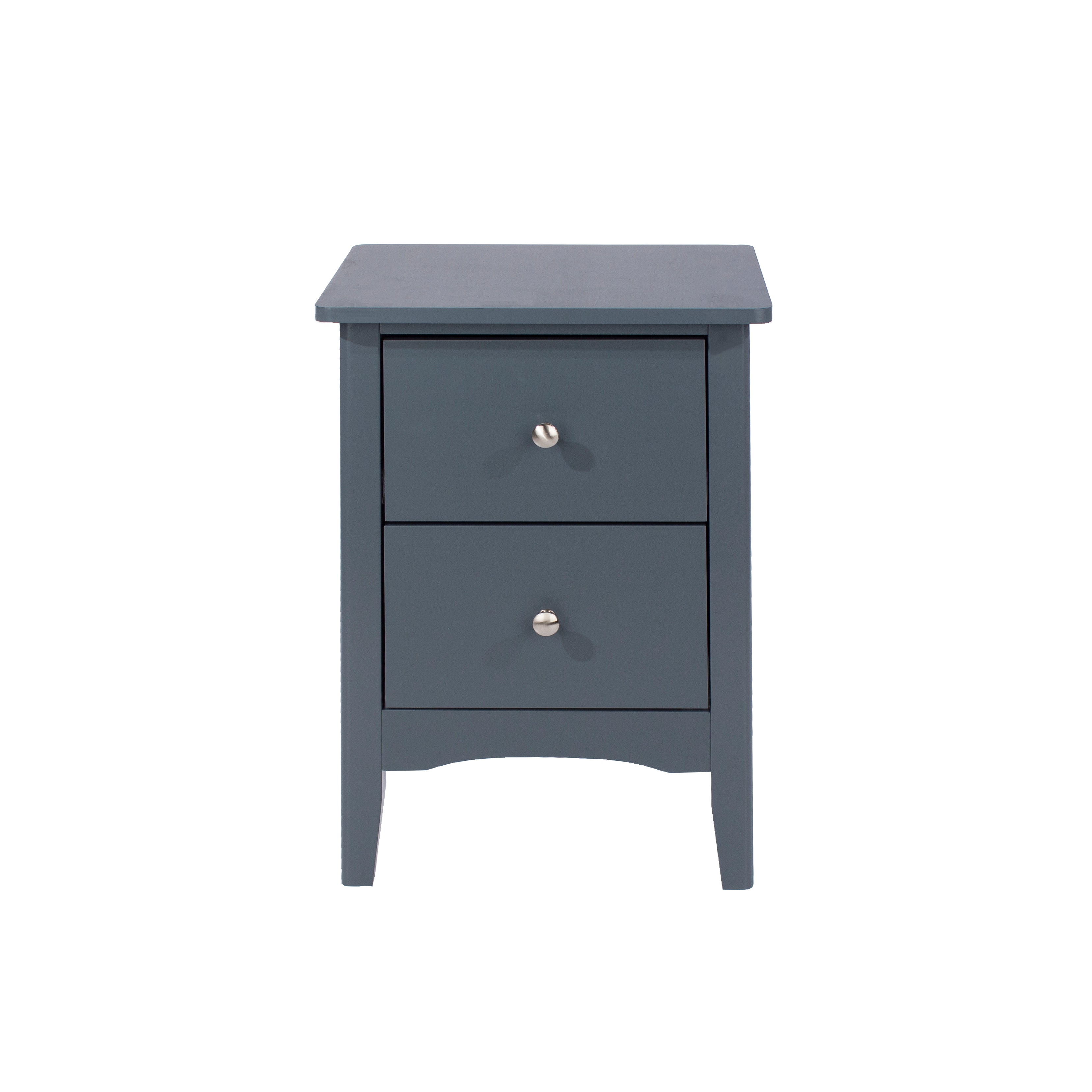 This 2 drawer bedside cabinet features a "midnight" dark blue/ grey paint finish, complimented with real metal handles and easy glide drawers W40 x D32 x H57 cm