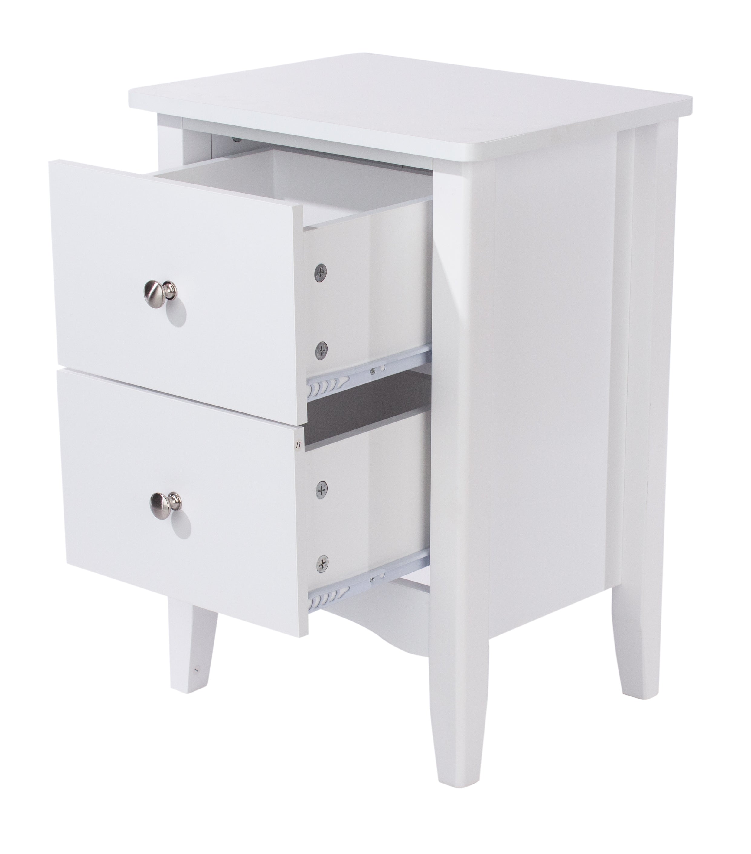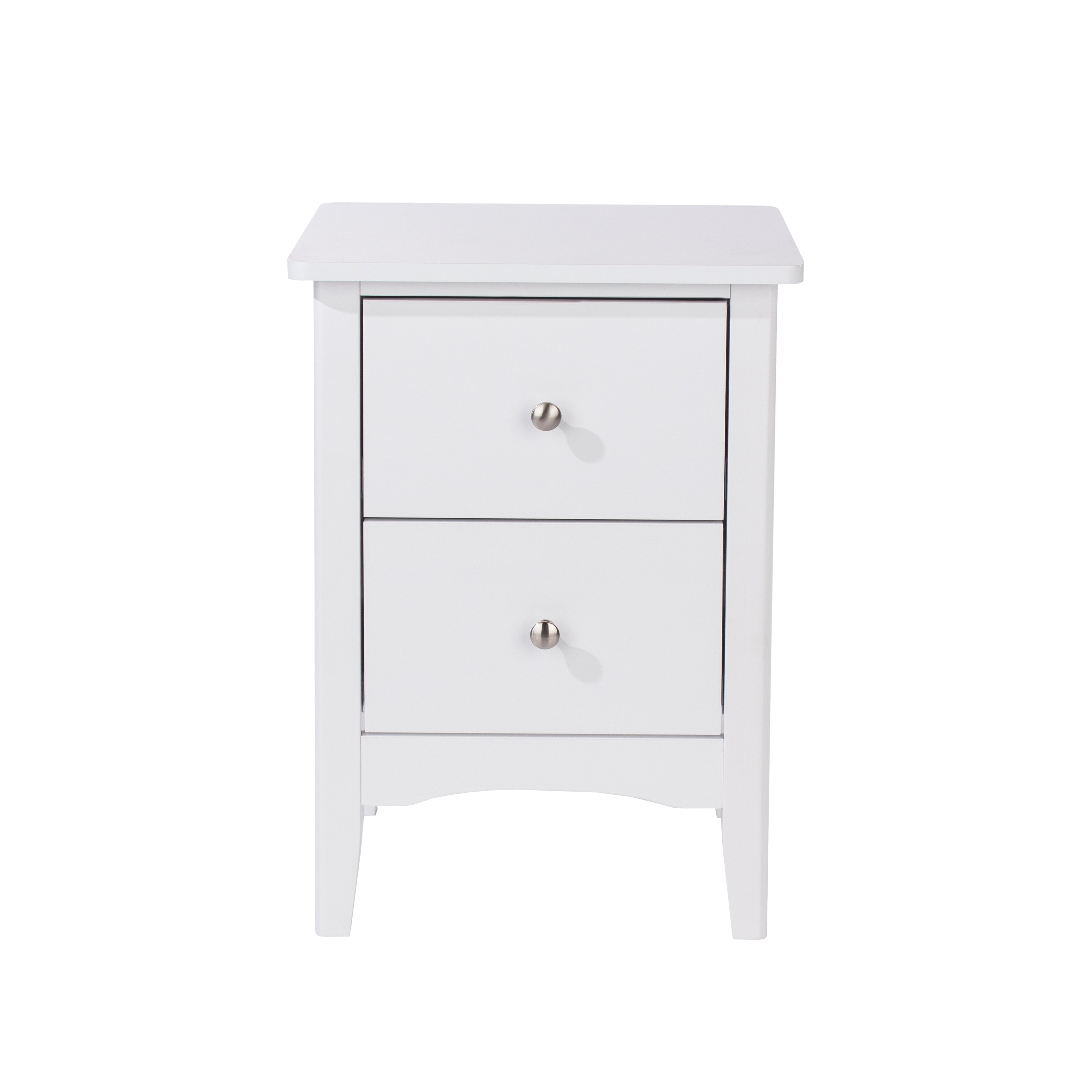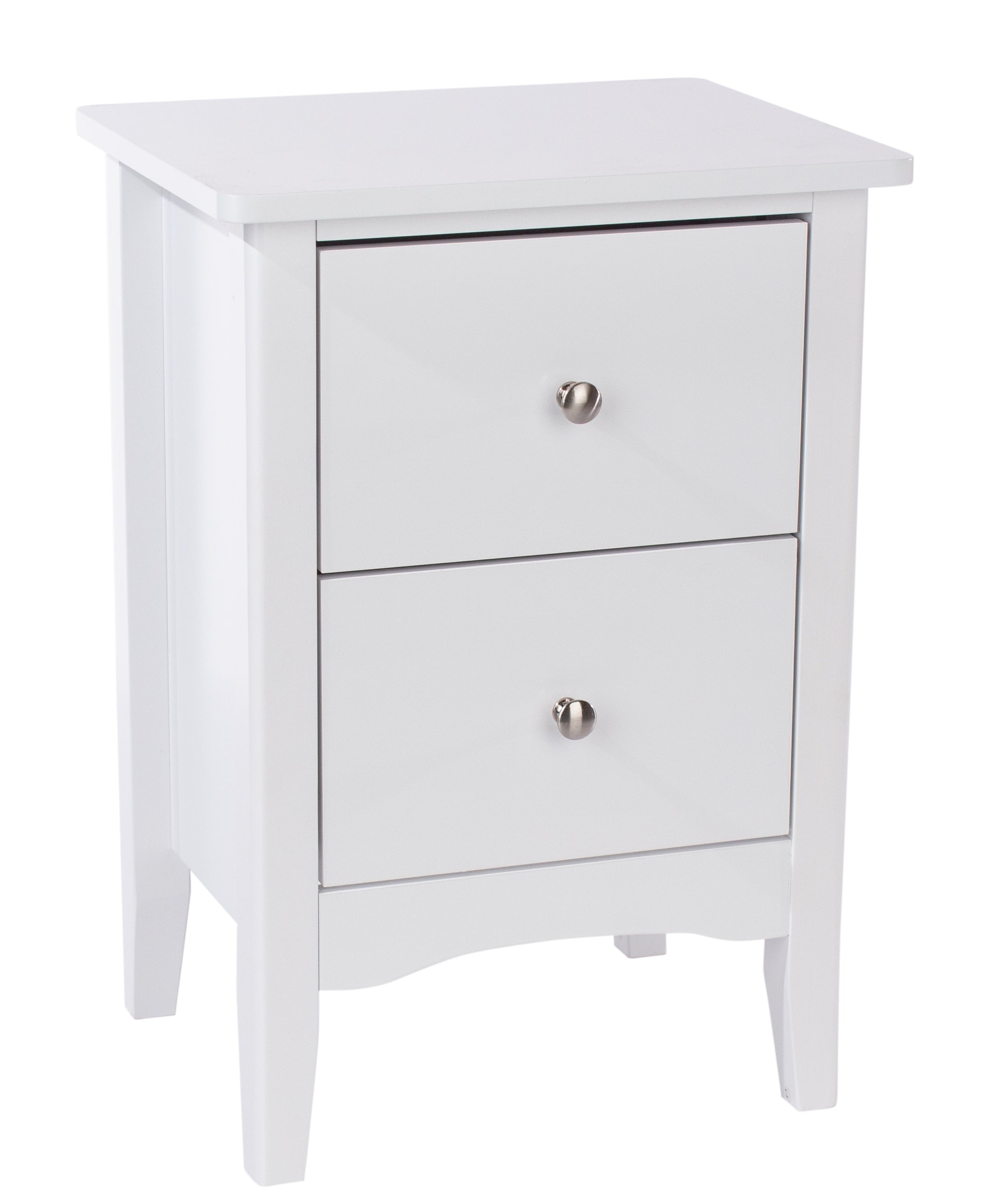 This 2 drawer bedside cabinet features a luxurious white paint finish, complimented with real metal handles and easy glide drawers W40 x D32 x H57 cm