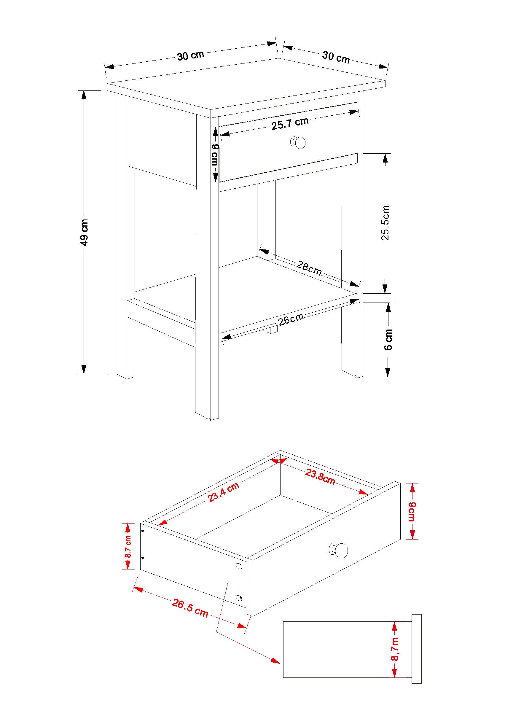shaker style petite 1 drawer bedside cabinet in midnight blue painted finish with complimenting painted handle, ideal for small spaces W30 x D30 x H49 cm