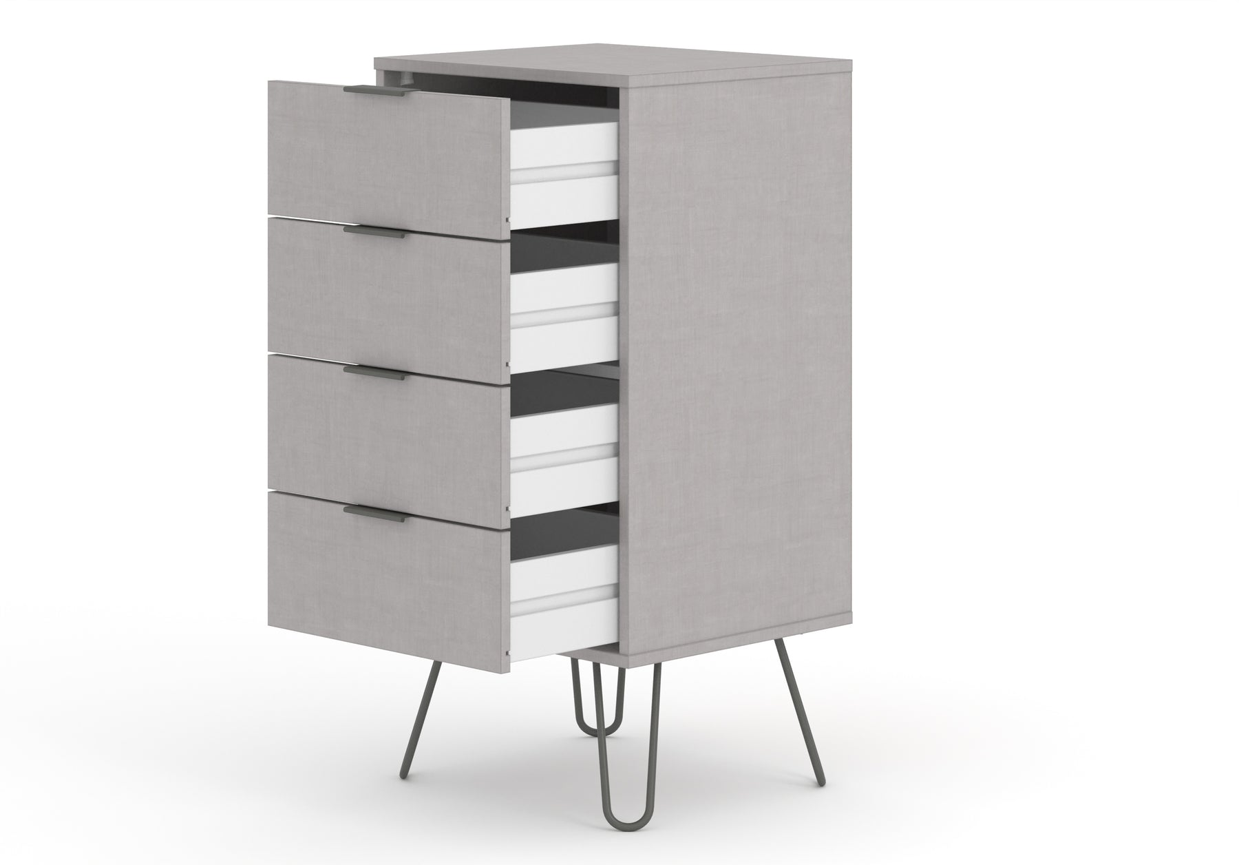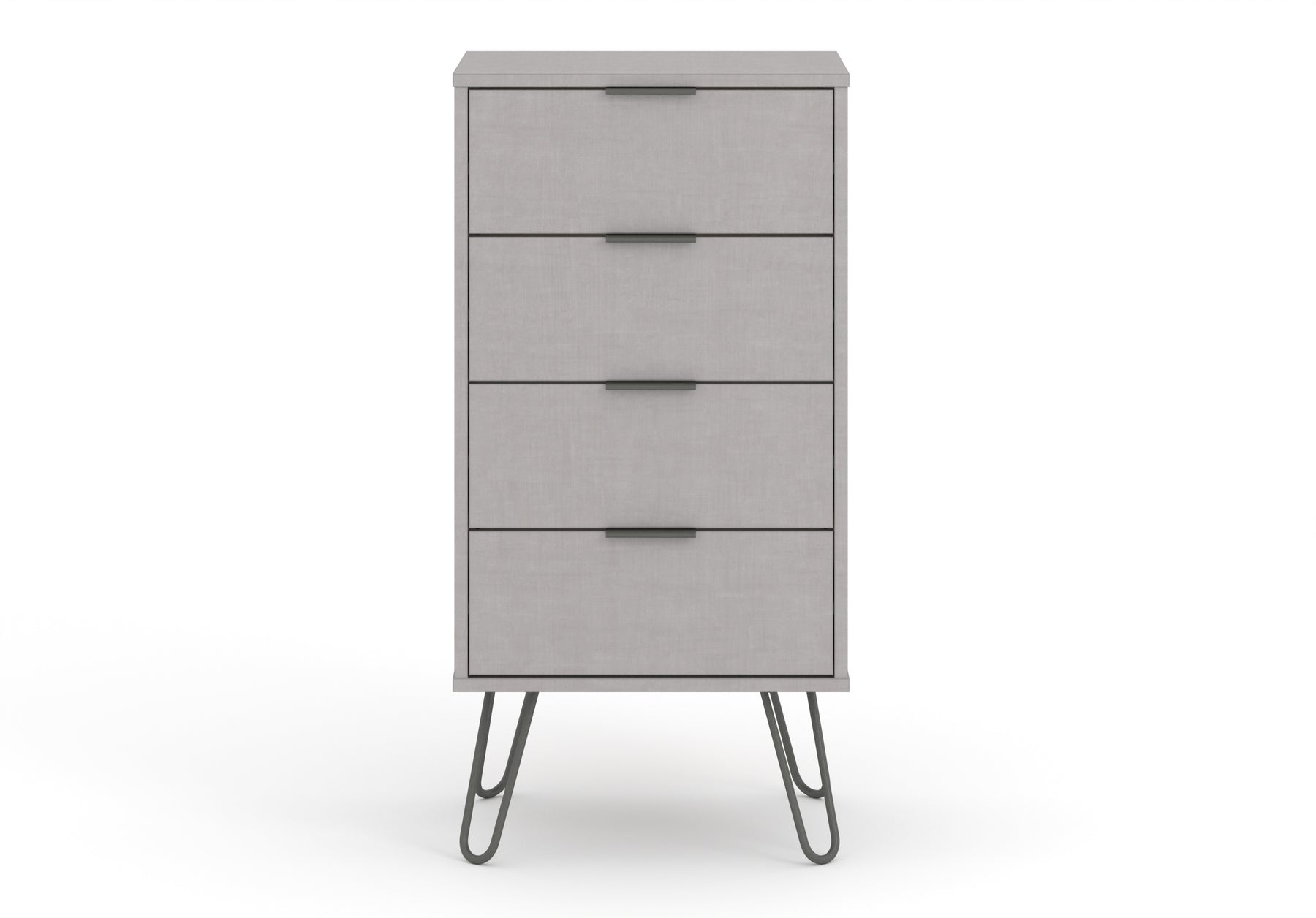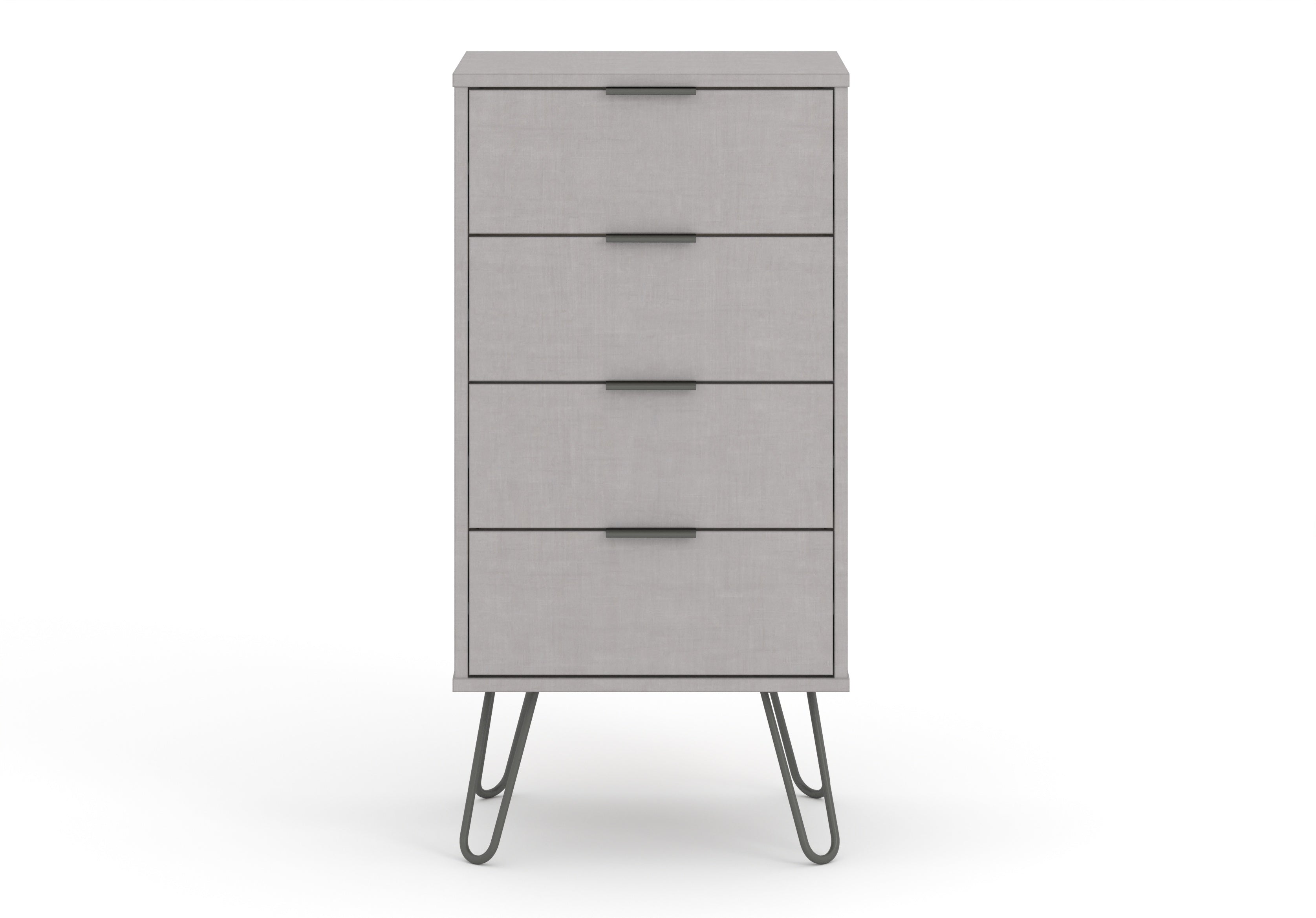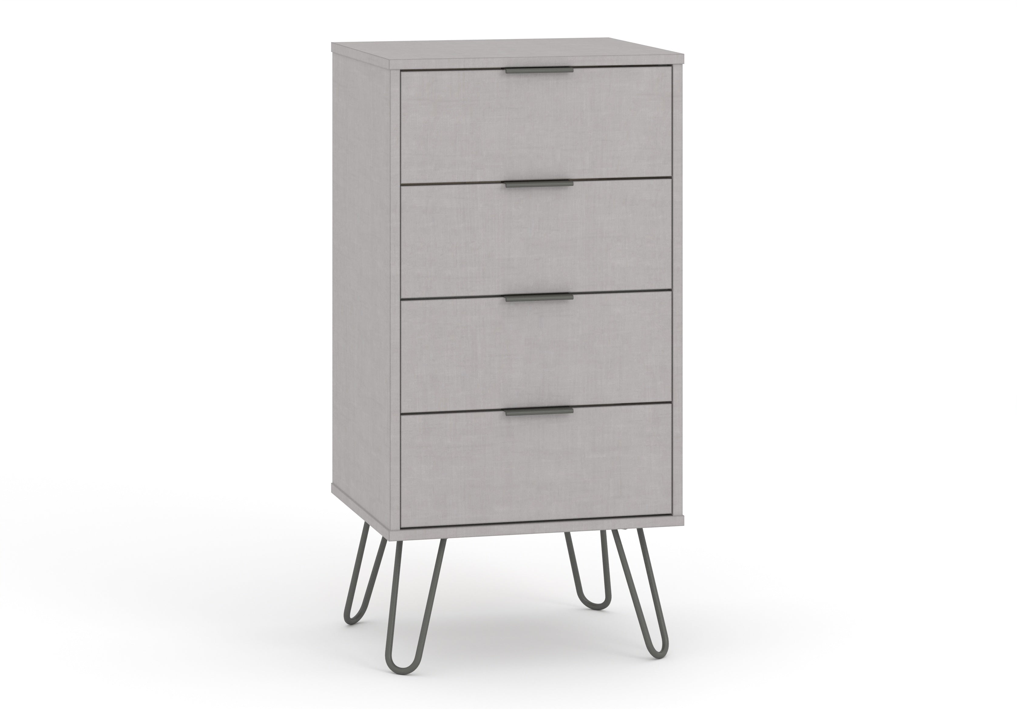 This compact size industrial look chest of 4 drawers combines an hardwearing, easy to clean grey textured melamine finish with plastic pull handles and metal feet. W45 x D39.5 x H90.3 cm