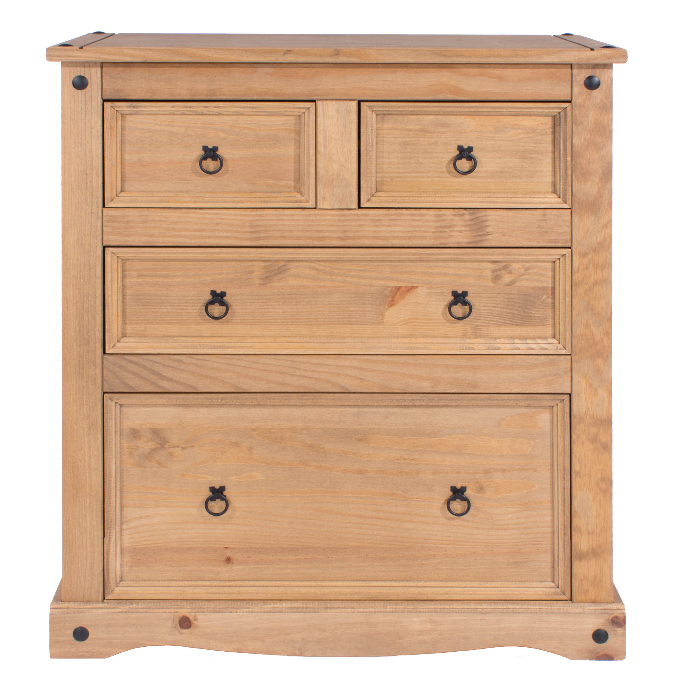 This useful 3 drawer chest offers generous storage with a combination of drawer sizes, finished in an antique wax with black metal hardware. W91 x D47 x H103.8 cm