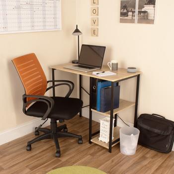 Loft Side Storage Desk with Black Mesh / Orange Fabric Office Chair (Self Assembly) (DHD)