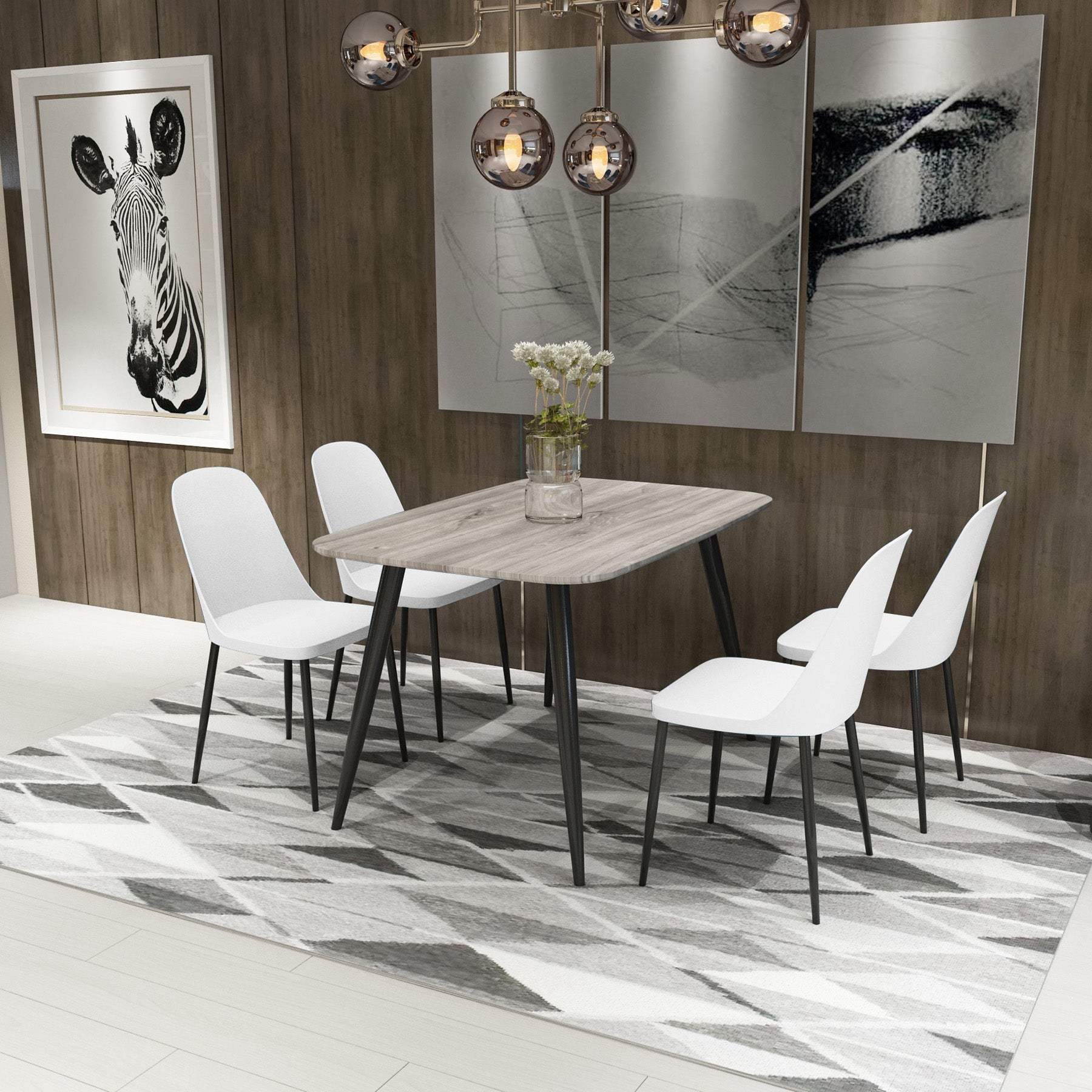 Aspen Grey Oak Rectangular Dining Set with 4 Duo Plastic White Chairs (Self Assembly) (DHD)