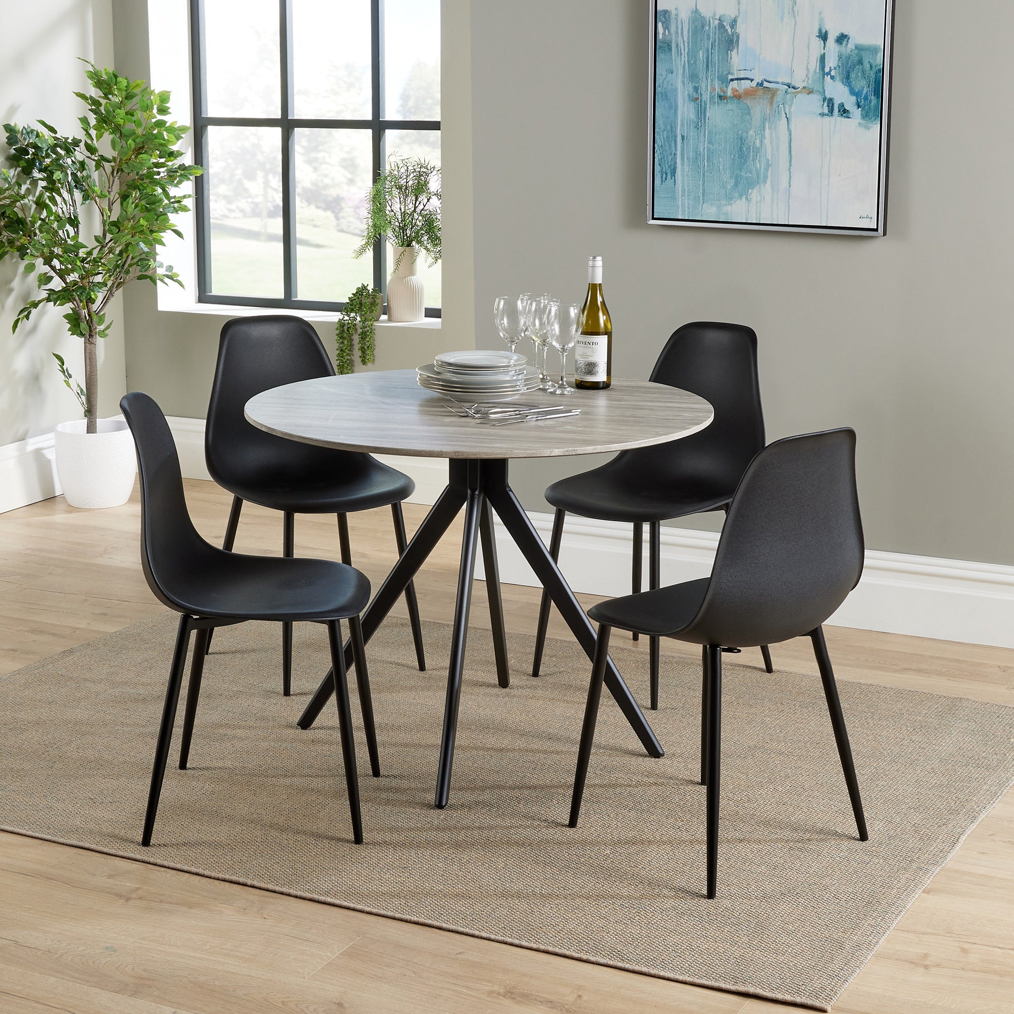 Aspen Grey Oak Round Dining Set with 4 Black Curve Chairs (Self Assembly) (DHD)