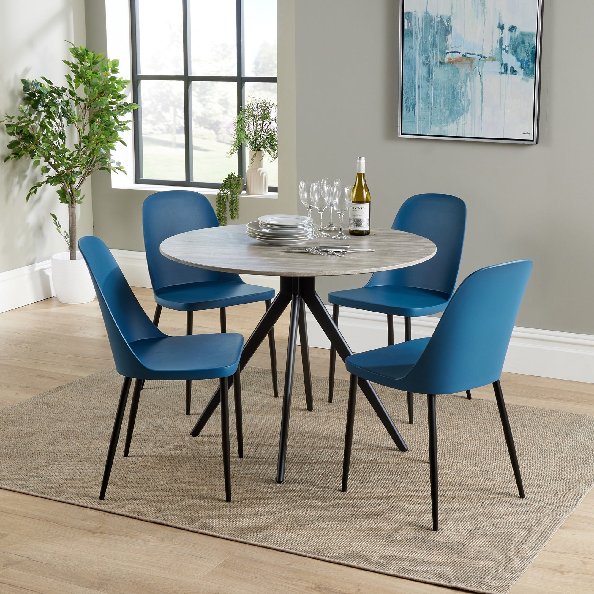 Aspen Grey Oak Round Dining Set with 4 Duo Plastic Blue Chairs (Self Assembly) (DHD)