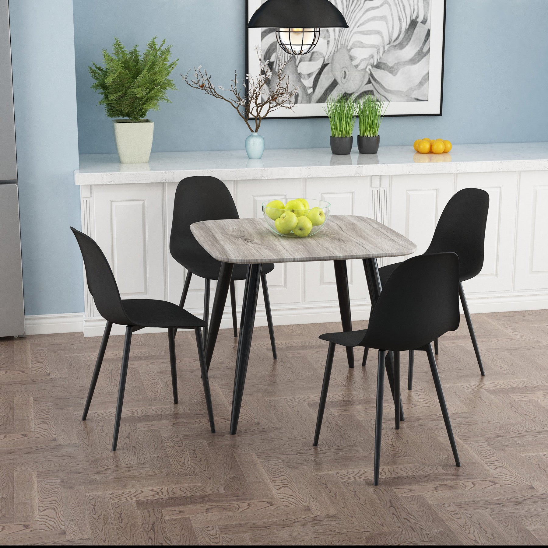 Aspen Grey Oak Square Dining Set with 4 Black Curve Chairs (Self Assembly) (DHD)