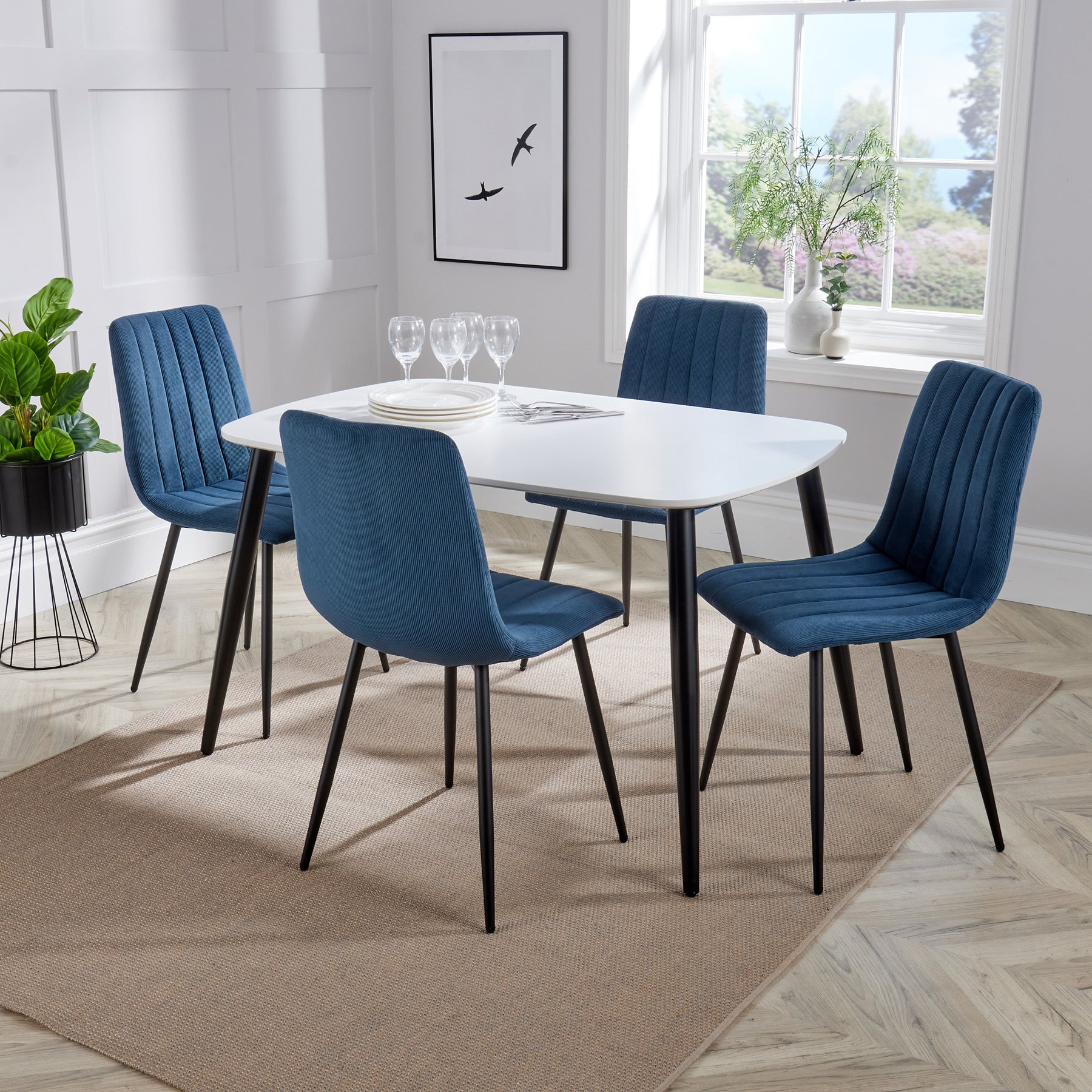 Aspen White Rectangular Dining Set with 4 Blue Fabric Chairs (Self Assembly) (DHD)
