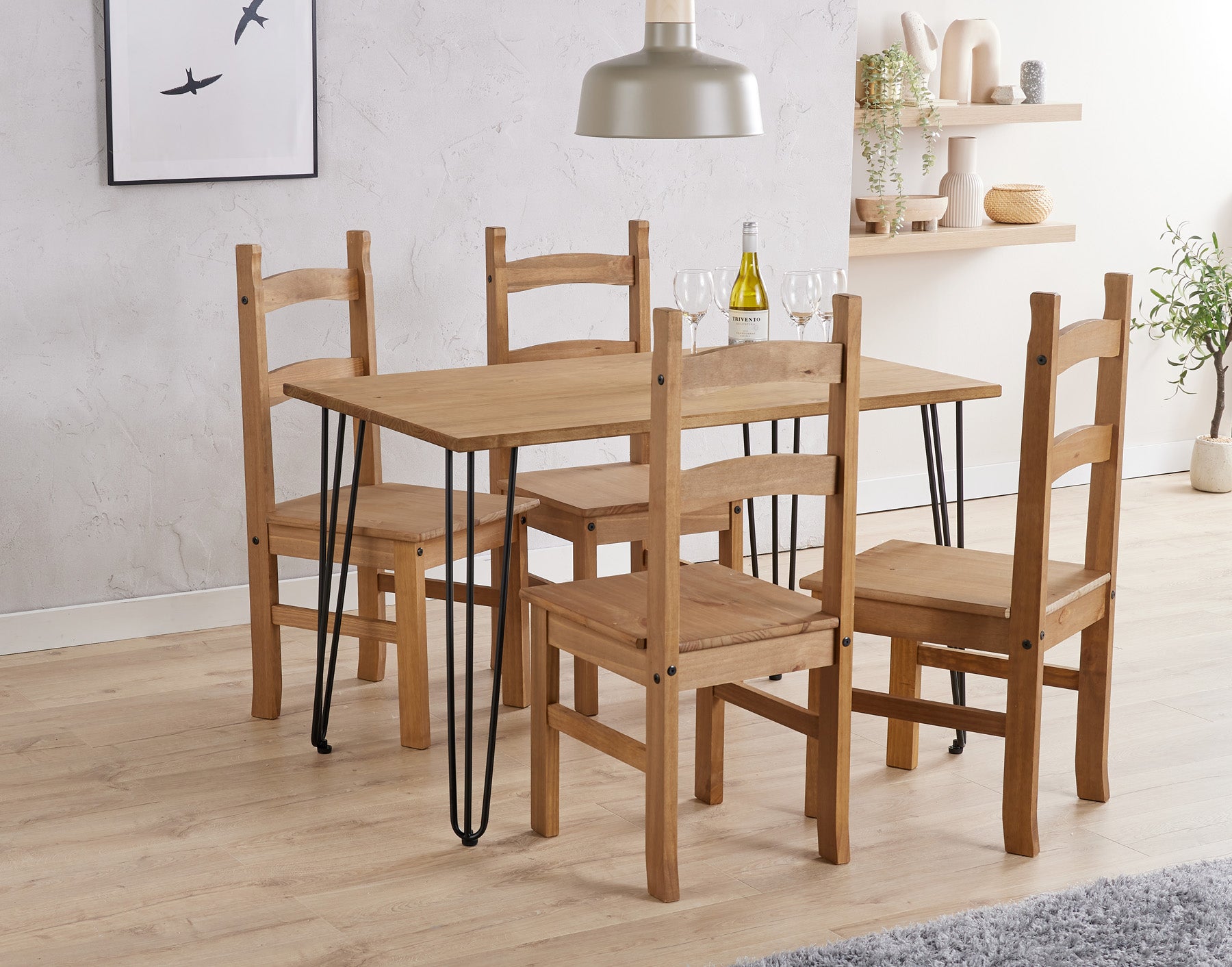 Augusta Waxed Pine Dining Set with 4 Corona Chairs (Self Assembly) (DHD)
