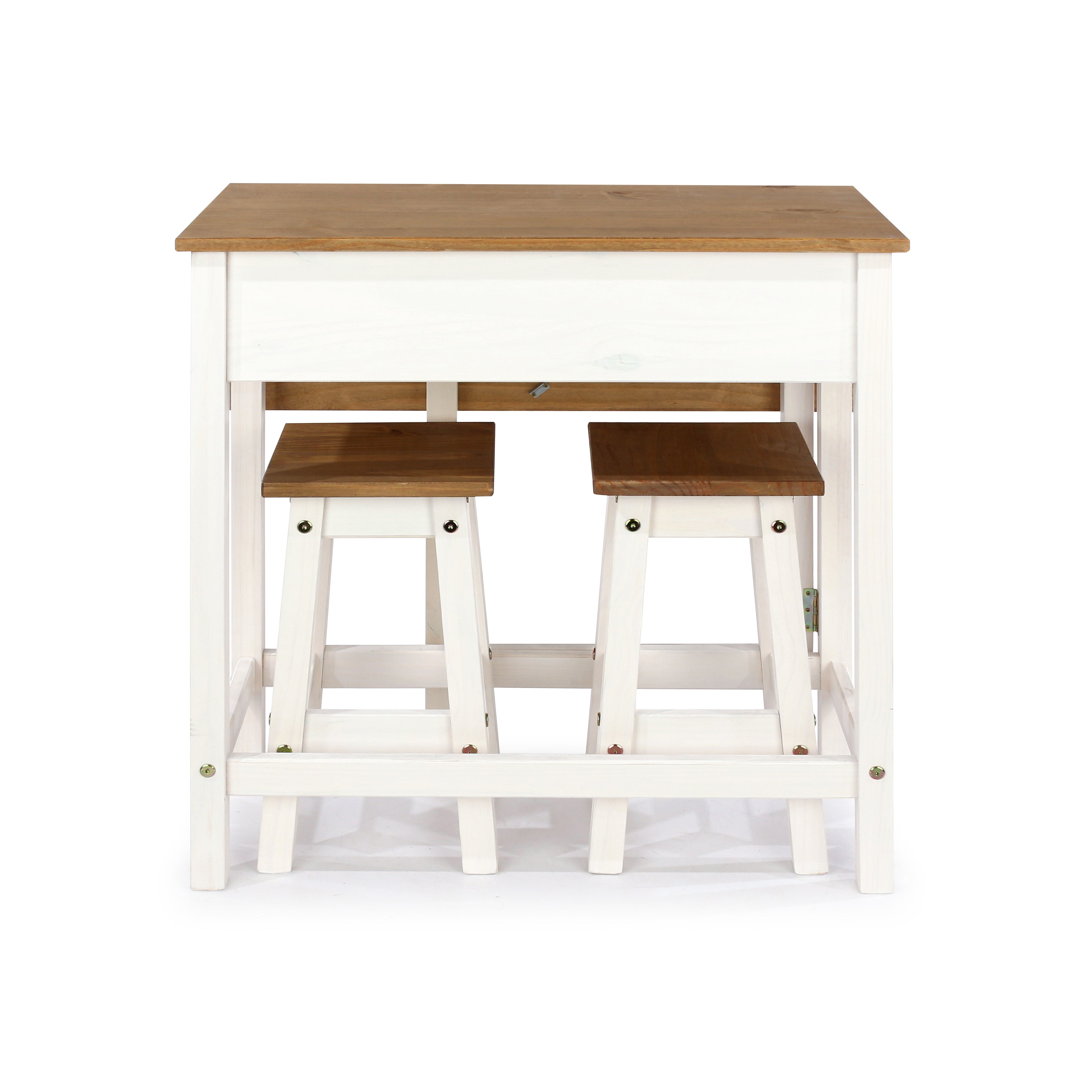 Our Space saving solid pine breakfast set including a drop leaf table and 2 matching stools in an antique & white wax finish. W80 x D40-72 x H84 cm