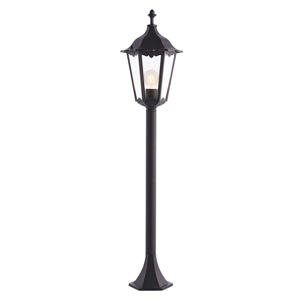 A timeless traditional exterior bollard, matt black painted die cast aluminium with clear glass panels and decorative details. Combine with a filament LED lamp to create an authentic look of the past.