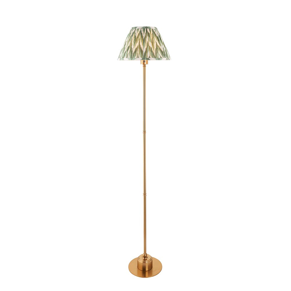 Not tied down with the need for a power cable, this fully portable, battery operated, rechargeable 3 stage touch dimmer floor light enables you to select your own level of light. Classic in style and finished in aged brass making it easy to place around your home. Turns on for low light then touch controlled to increase light level to medium then bright. Taking just 5.5 hours to fully charge and giving up to 36 hours of continuous light. Place anywhere where other lights cannot reach, a truly versatile addition to your home. Finished with our bold Cotswold green 30cm Zigzag shade for the perfect timeless style.