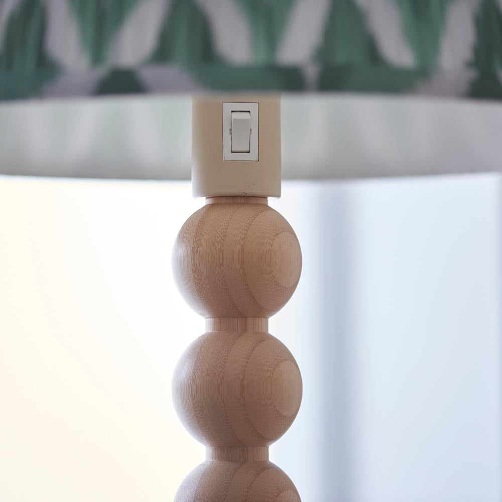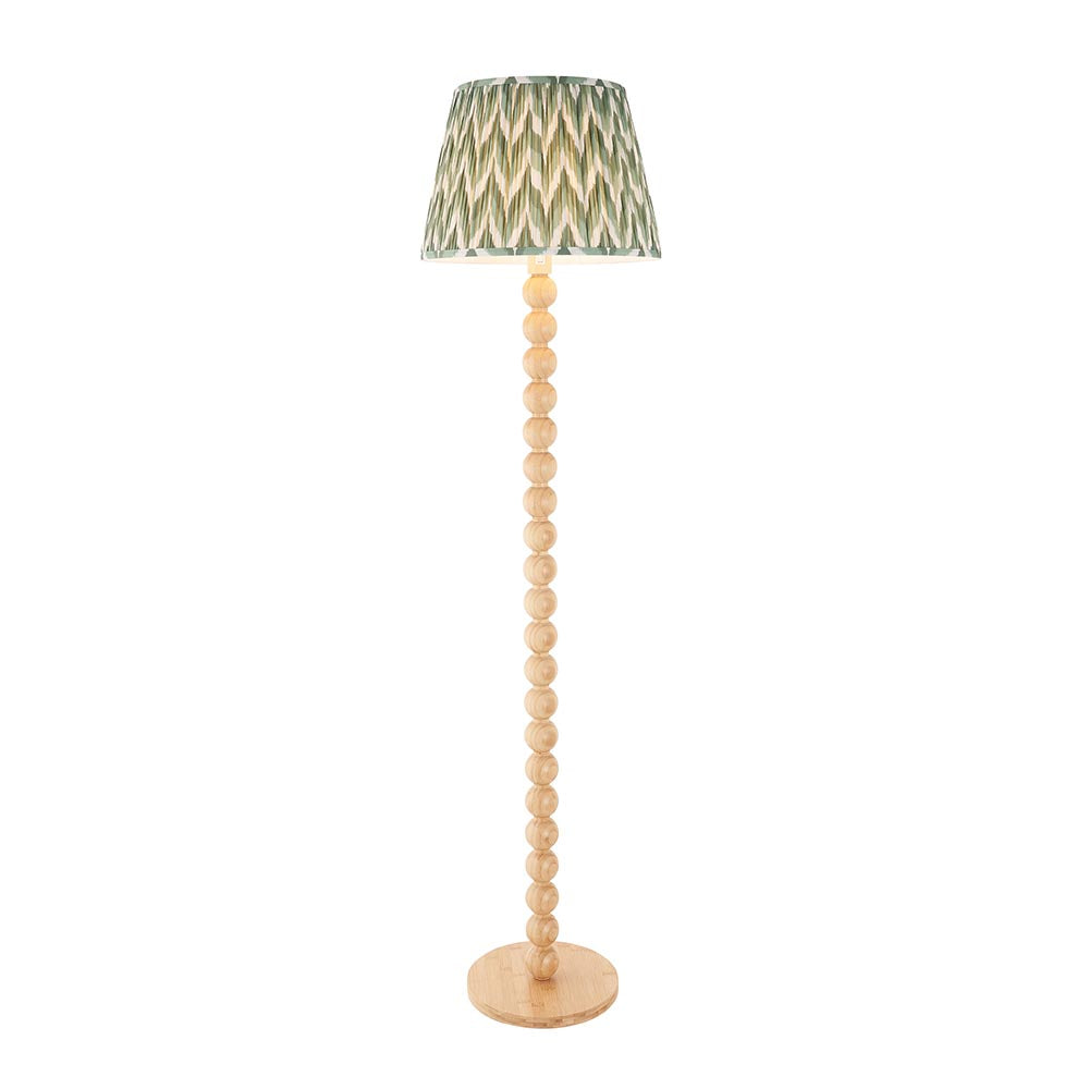 This natural floor lamp features stacking spheres of bamboo wood, with a 40cm tapered shade in a bright Cotswold green zigzag pattern design. A versatile design style that would look at home in both classic and modern interiors.