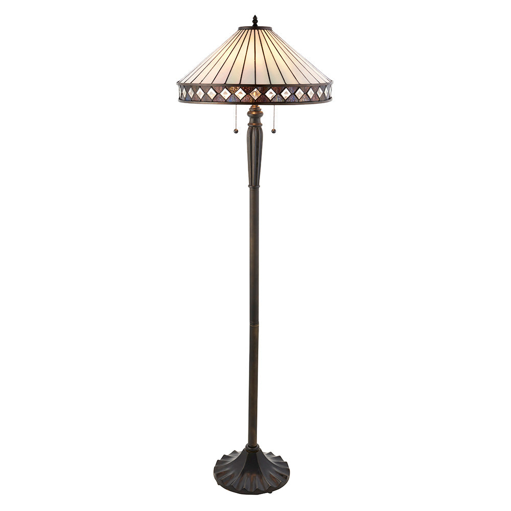 This Tiffany style floor light is a beautifully understated design comprising of clean lines and diamond shaped detailing. Teamed with a satin black fitting and compatible with LED lamps. Matching items available for a coordinated look
