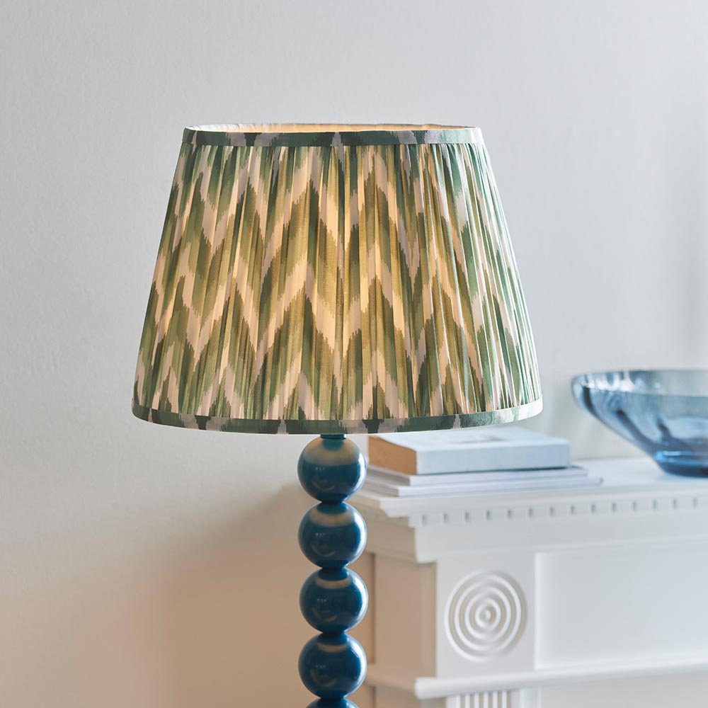 Add some colour to your home with this playful floor light. Multiple stacked metal spheres finished in gloss marlin blue paint with an E27 lamp holder, in-line foot switch and colour matched fabric flex. Paired with our bold Cotswold green 35cm Zigzag shade to complete this perfect colour addition to your home.