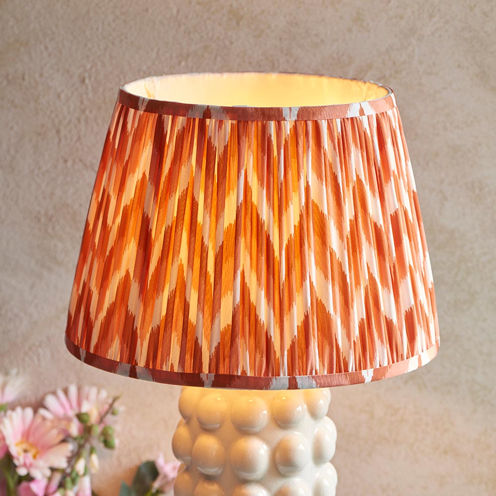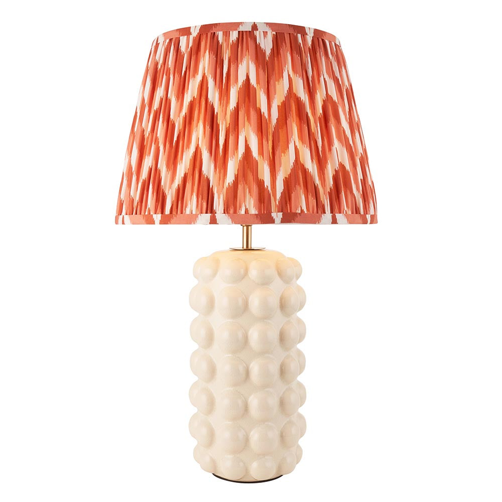 An interior must have, this playful ceramic table light features sculptured bobble shapes finished in a gloss vintage white crackle glaze. With a switched brass B22 lamp holder and grey braided flex; paired with our bright apricot orange 35cm Zigzag shade for the perfect interior addition.