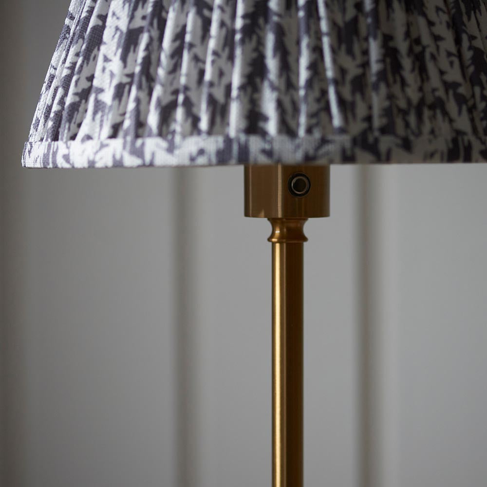 Not tied down with the need for a power cable, this fully portable, battery operated, rechargeable 3 stage touch dimmer floor light enables you to select your own level of light. Classic in style and finished in aged brass making it easy to place around your home. Turns on for low light then touch controlled to increase light level to medium then bright. Taking just 5.5 hours to fully charge and giving up to 36 hours of continuous light. Place anywhere where other lights cannot reach, a truly versatile addition to your home. Finished with our subtle pearl grey 25cm Leaf shade for the perfect timeless style.