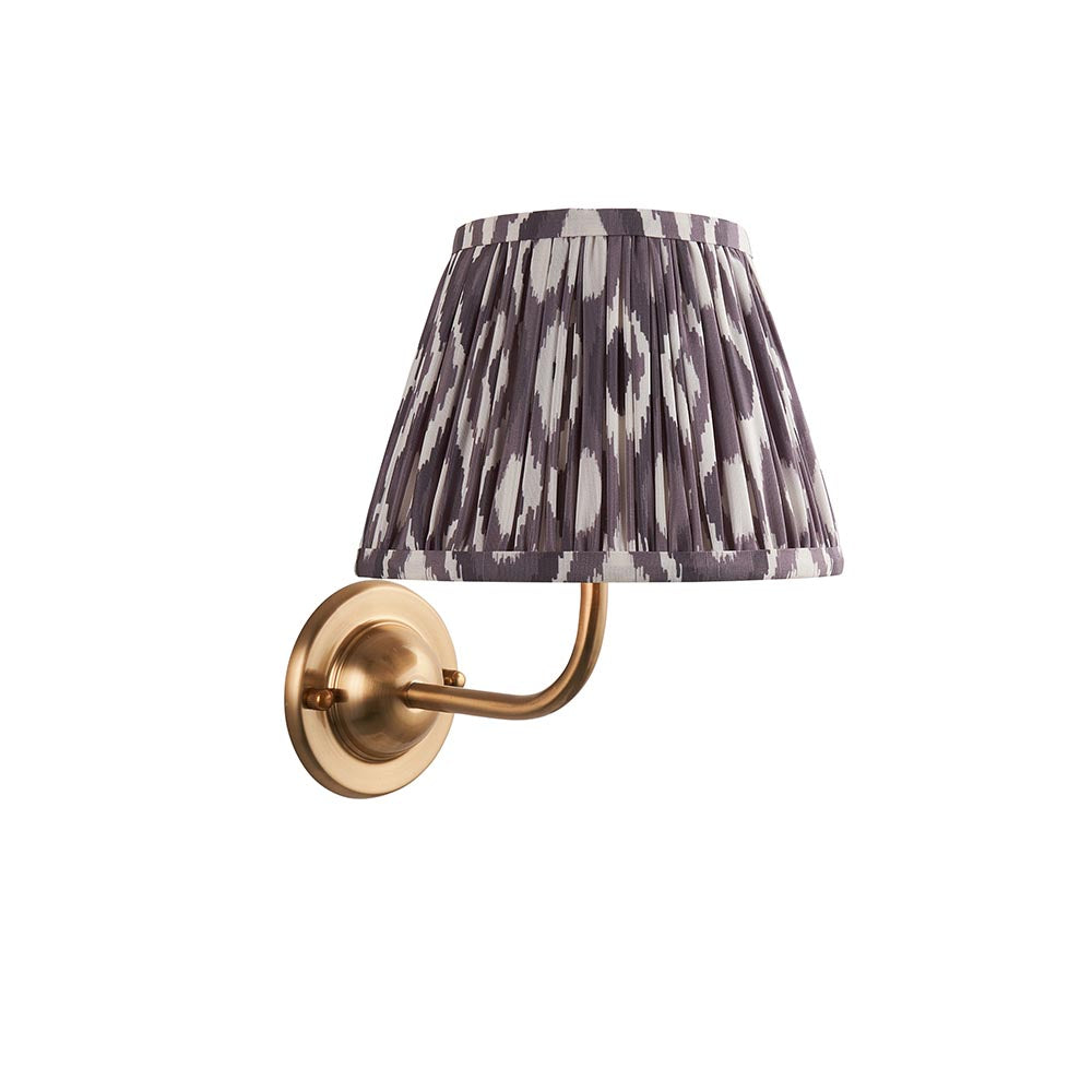 An ageless dome shaped wall light with a simple curve arm, finished in brushed aged brass. Paired with our stylish pearl grey 20cm Ikat shade, for a timeless look.