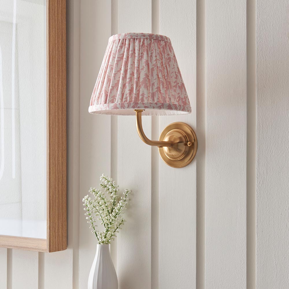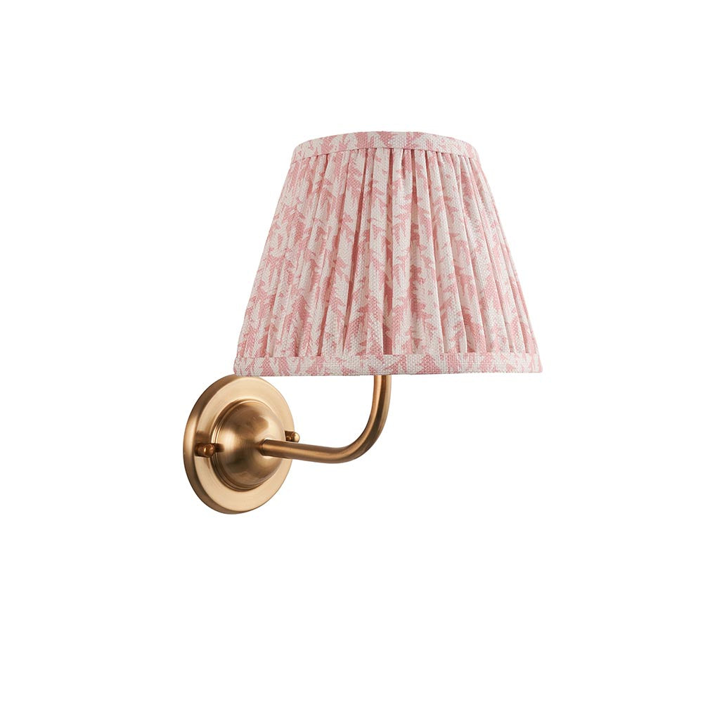 An ageless dome shaped wall light with a simple curve arm, finished in brushed aged brass. Paired with our subtle peachy keen 20cm Leaf shade, for a timeless look.