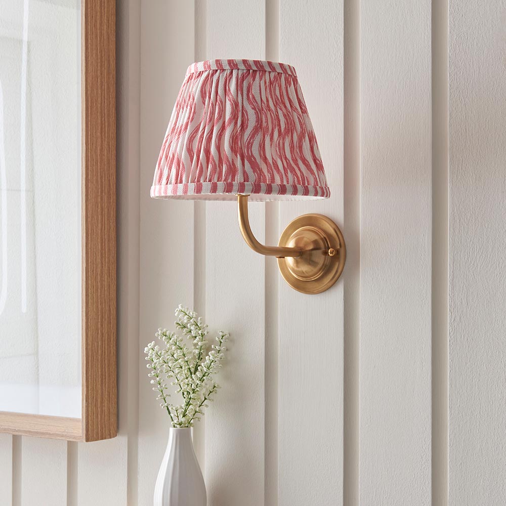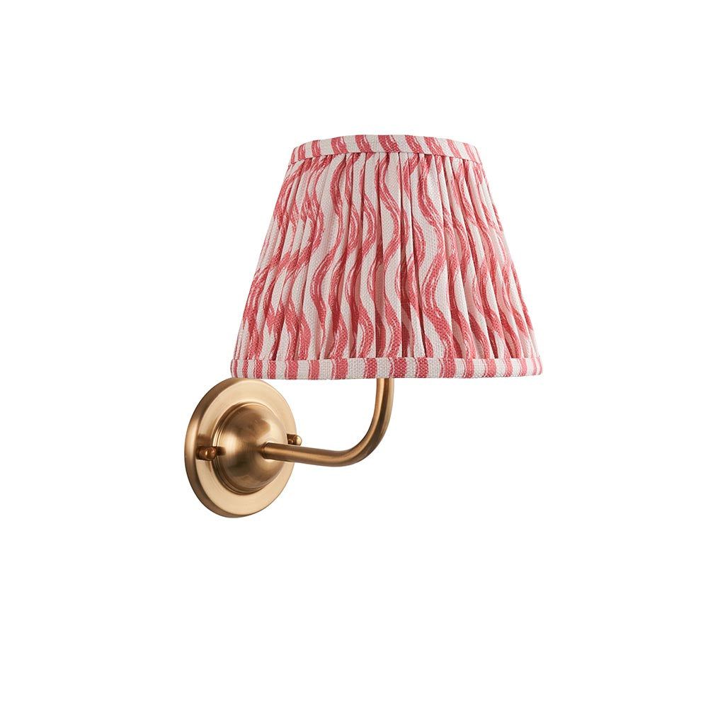 An ageless dome shaped wall light with a simple curve arm, finished in brushed aged brass. Paired with our bright coral pink 20cm Ripple shade, for a timeless look.