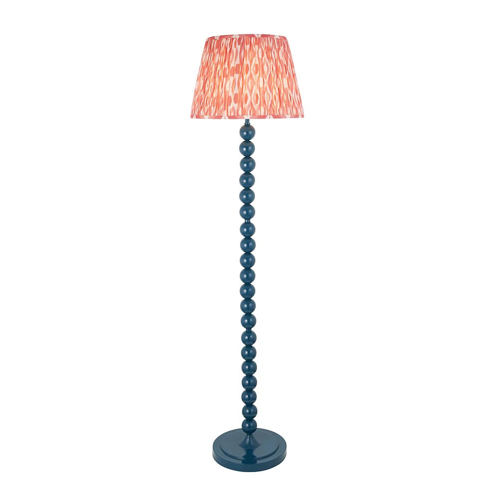 Add some colour to your home with this playful floor light. Multiple stacked metal spheres finished in gloss marlin blue paint with an E27 lamp holder, in-line foot switch and colour matched fabric flex. Paired with our vibrant coral pink 40cm Ikat shade to complete this perfect colour addition to your home.