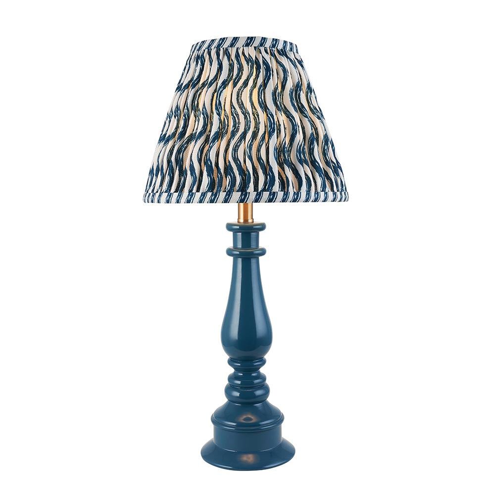 Getting its inspiration from turned classic staircase spindles, this table light is finished in high gloss marlin blue colour resin, with switched B22 brass lamp holder and pale braided fabric flex. Paired with our vibrant marlin blue 25cm Ripple shade to complete this timeless country luxe look.