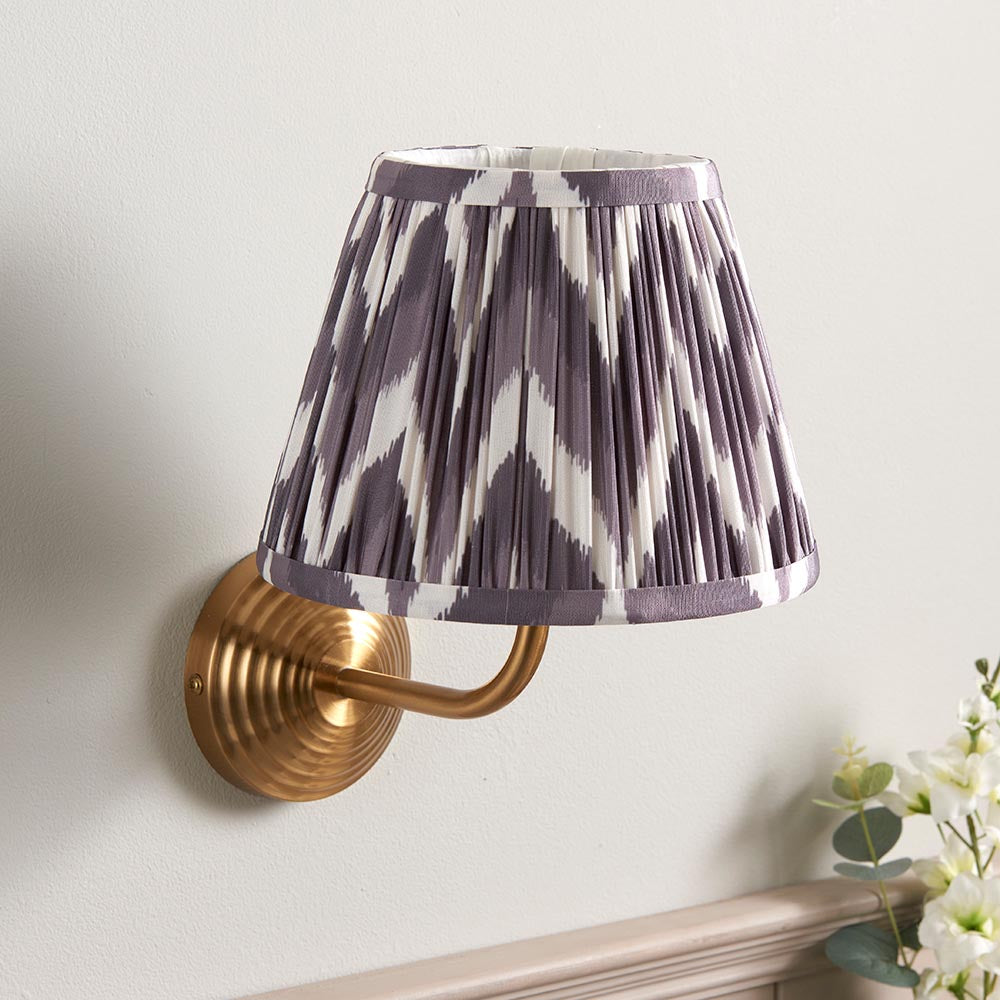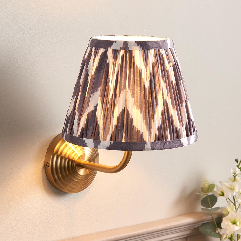 A multiple stepped wall light with a simple curve arm, finished in brushed aged brass. Paired with our stylish pearl grey 20cm Zigzag shade for a classic look.
