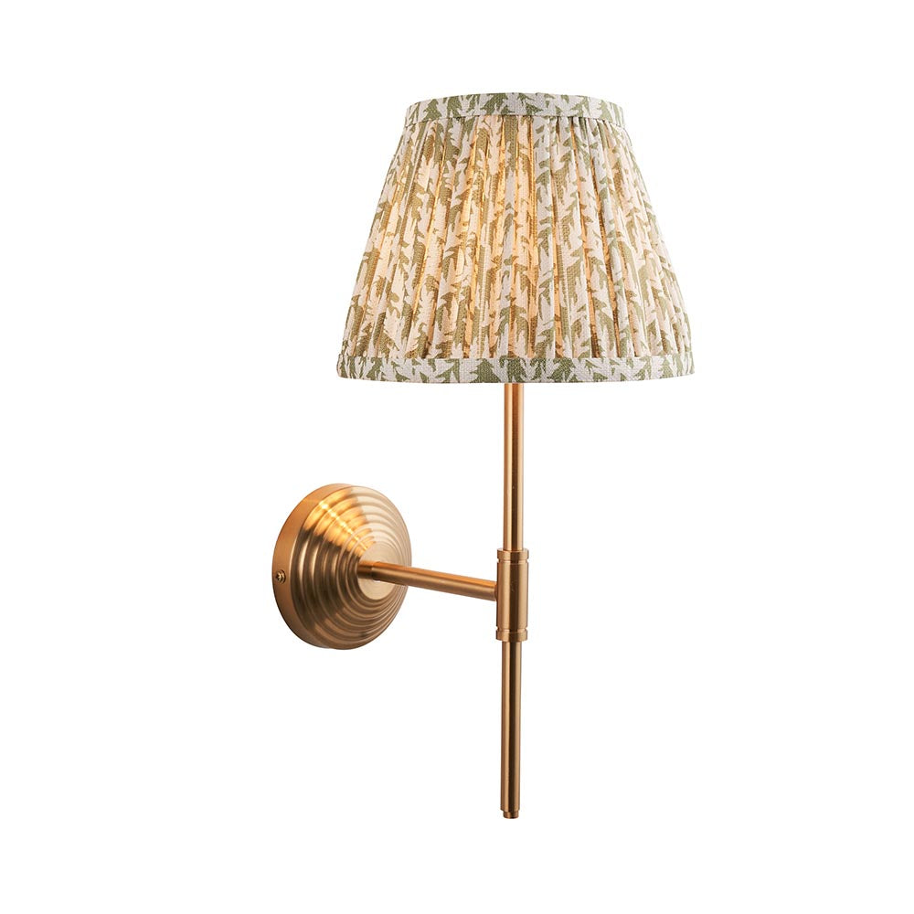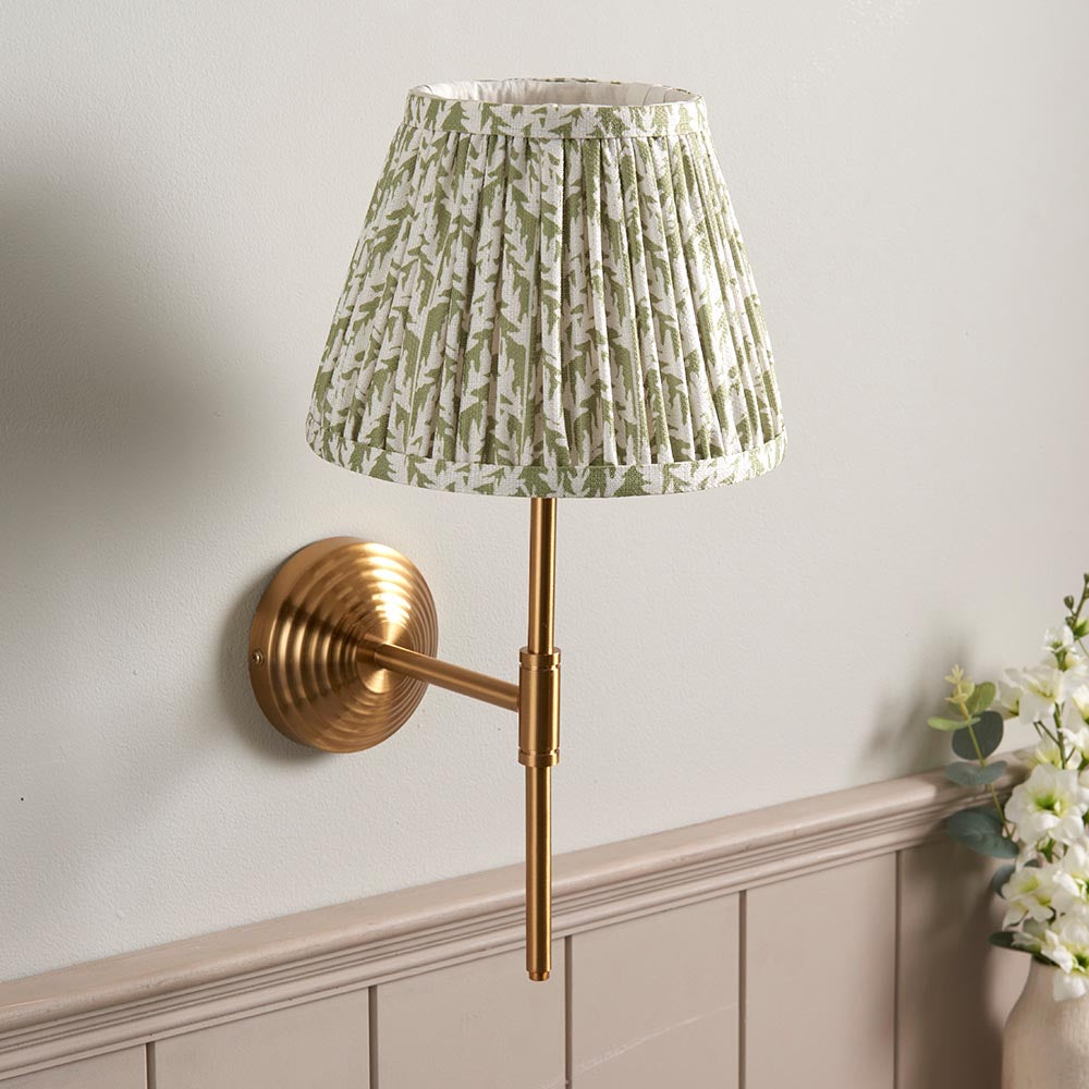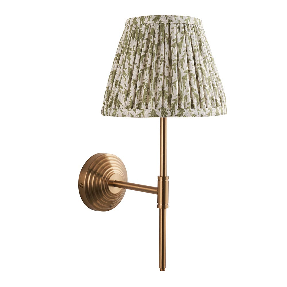 A multiple stepped wall light with an understated T shape arm. Perfect for many areas of your home, finished in brushed aged brass; completed with our subtle herb green 20cm Leaf shade for a classic look.