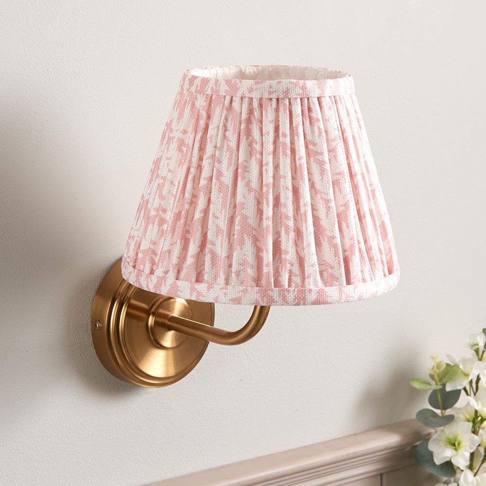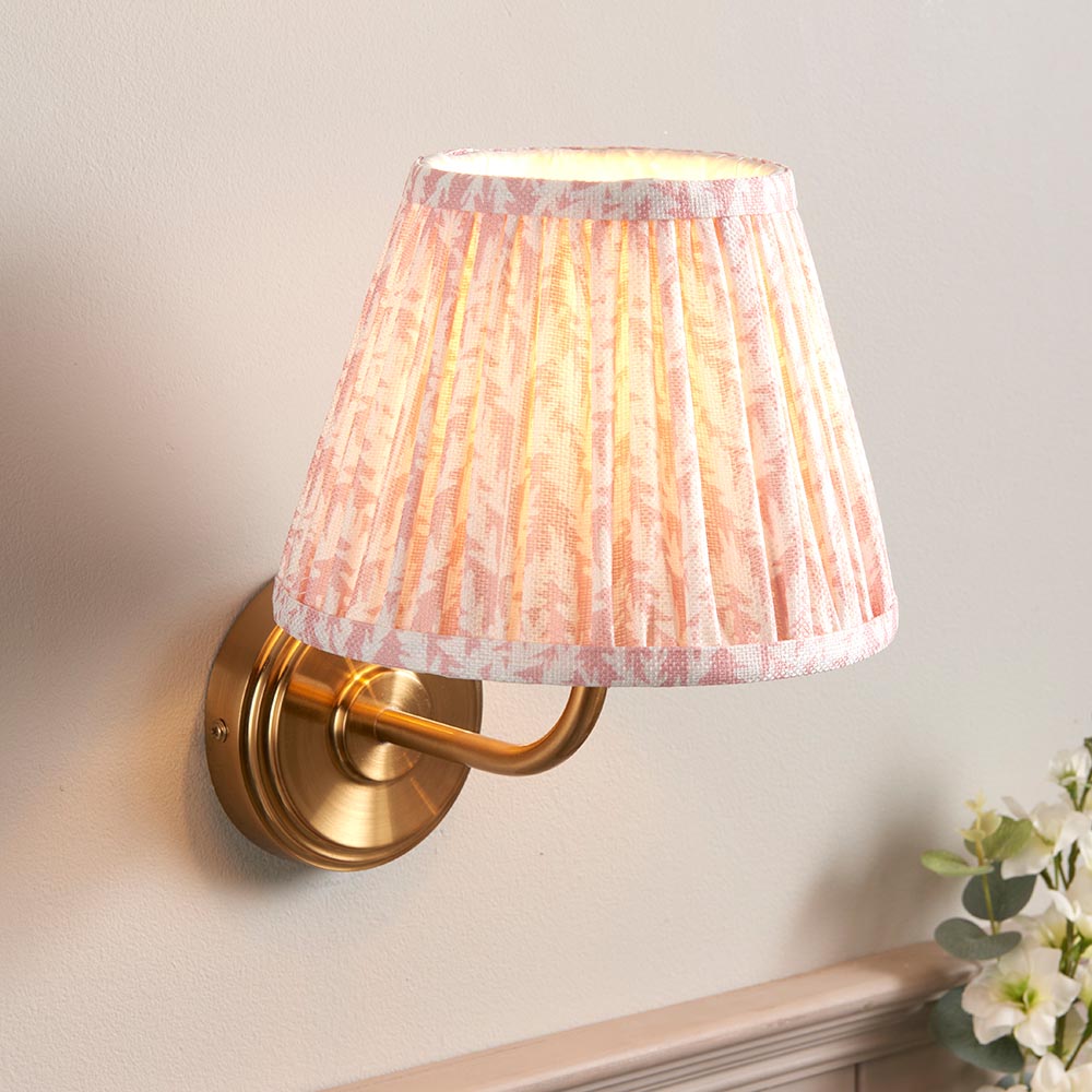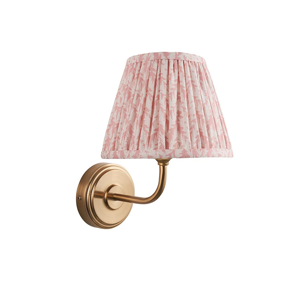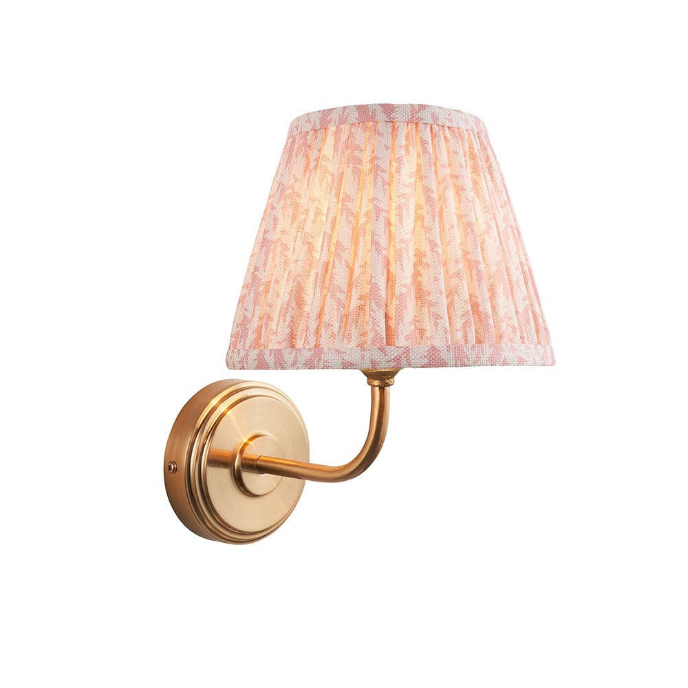 A classic stepped wall light with a simple curve arm, finished in brushed aged brass. This classic look is completed with our subtle peachy keen 20cm Leaf shade.