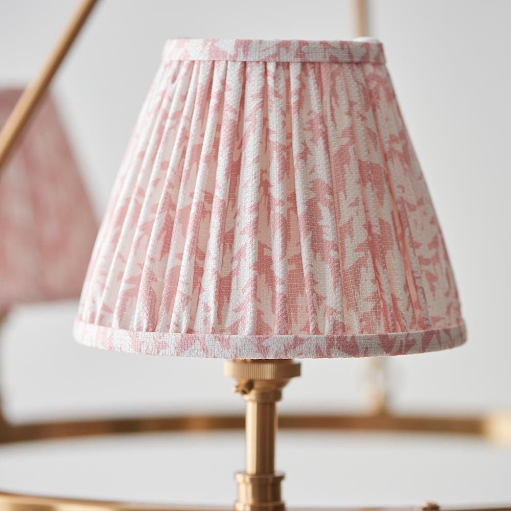 The timeless simplicity of a hoop design, finished in aged brass plate with authentic brass B22 lamp holders, make it the perfect addition to your home; with height adjustable chain and twisted fabric flex. Completed with 3 of our subtle peachy keen 16cm Leaf shades for a timeless chandelier to be proud of.