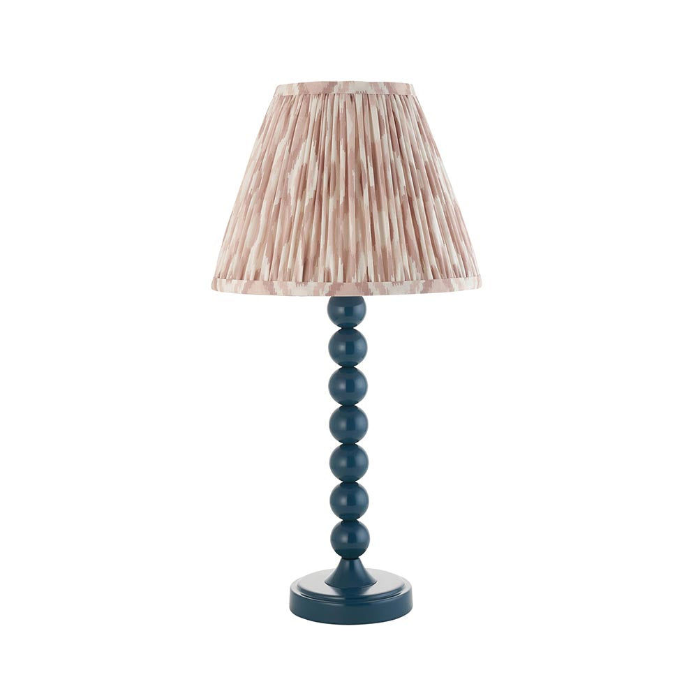 Add some colour to your home with this playful table light. Multiple stacked metal spheres finished in gloss marlin blue paint with an E14 lamp holder, in-line on/off switch and colour matched fabric flex. Paired with our natural 20cm Ikat shade to complete this perfect colour addition to your home.