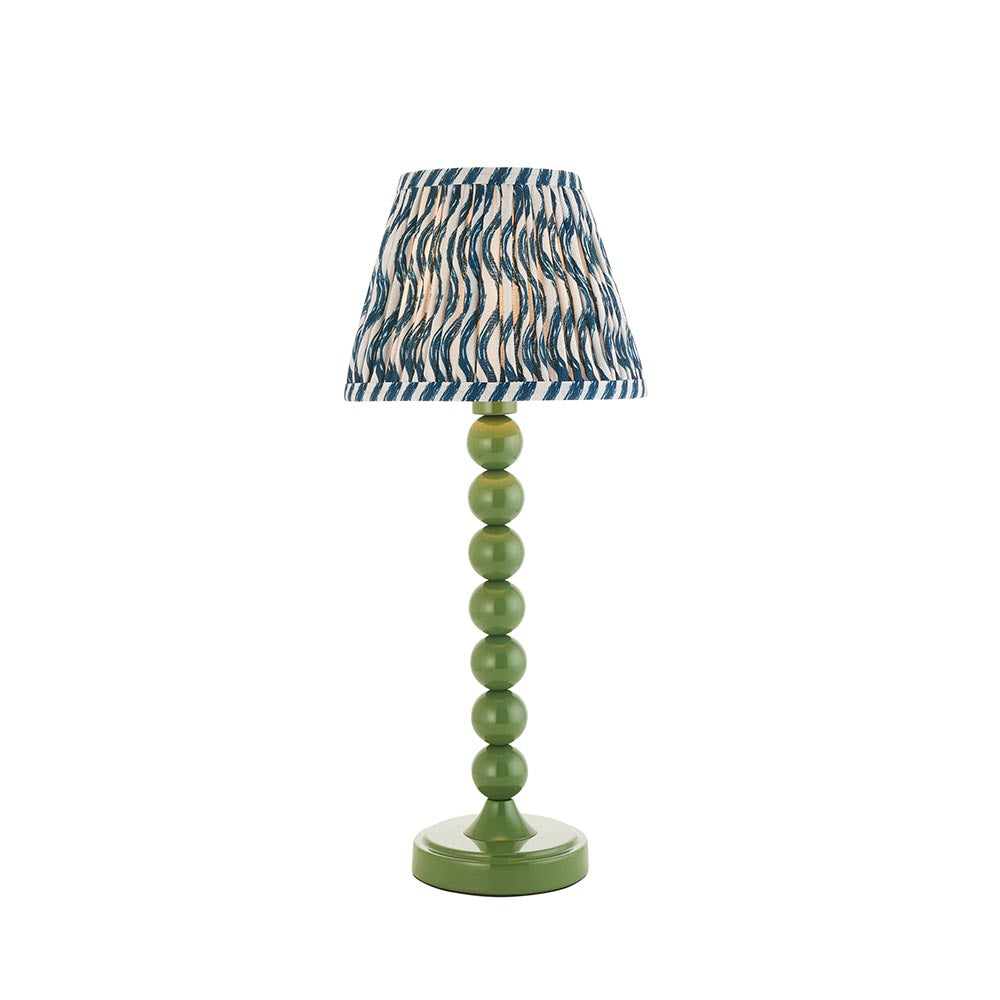 Add some colour to your home with this playful table light. Multiple stacked metal spheres finished in gloss Cotswold green paint with an E14 lamp holder, in-line on/off switch and colour matched fabric flex. Paired with our vibrant marlin blue 20cm shade to complete this perfect colour addition to your home.