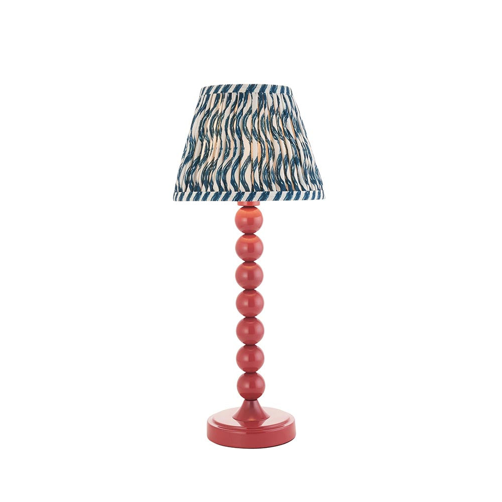Add some colour to your home with this playful table light. Multiple stacked metal spheres finished in gloss pink clay paint with an E14 lamp holder, in-line on/off switch and colour matched fabric flex. Paired with our vibrant marlin blue 20cm Ripple shade to complete this perfect colour addition to your home.