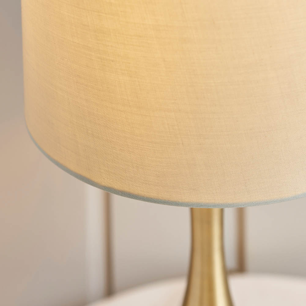 The Piccadilly is a stylish table light with a soft brass plate and a simple taupe fabric shade. Clever touch technology for operating and dimming. Other colour options available
