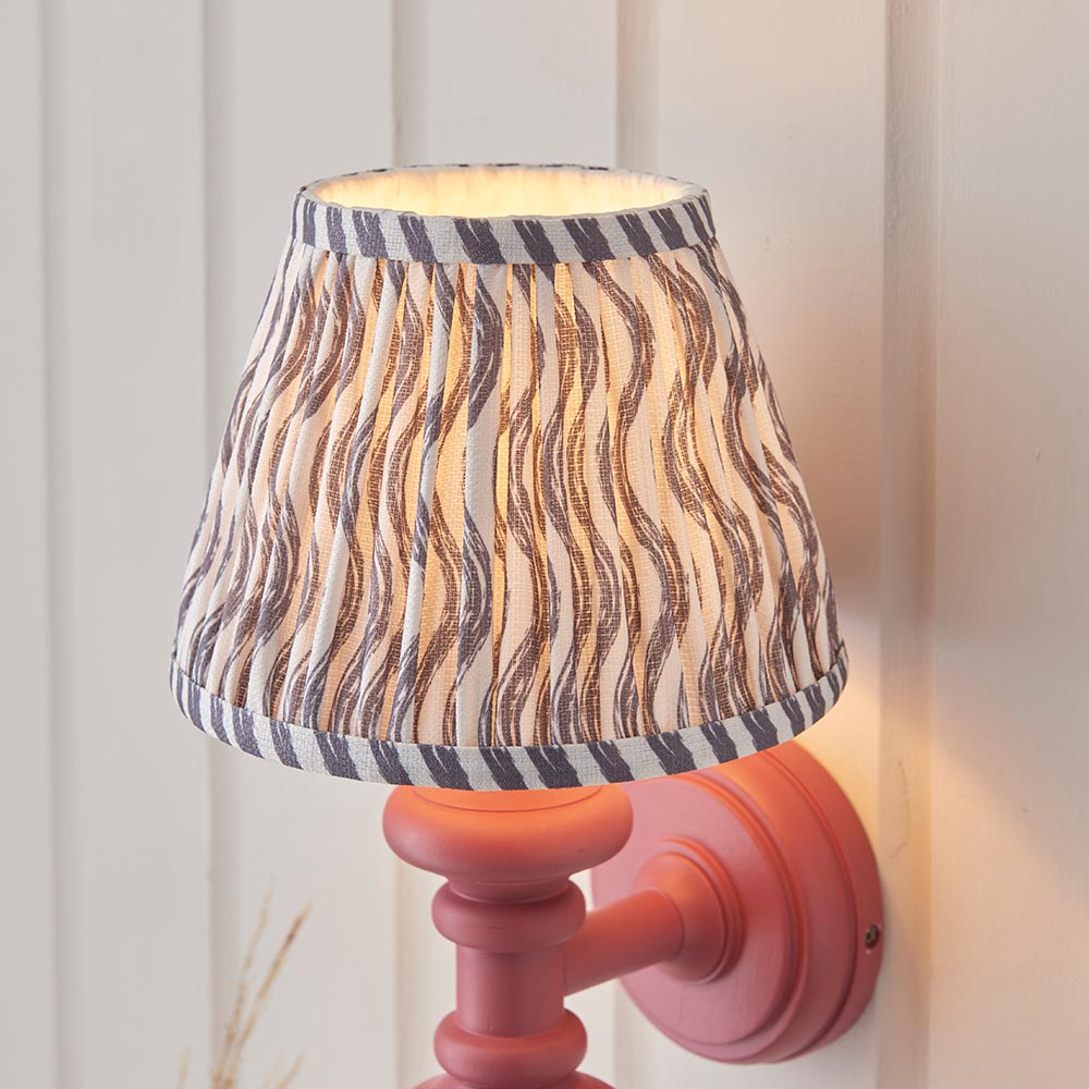 This unique wooden turned spindle wall light is inspired by past design styles with a fresh update. Painted in classic satin pink clay with a brass B22 lamp holder for that timeless authentic look. Paired with our stylish pearl grey 20cm Ripple shade for a unique, classic style.