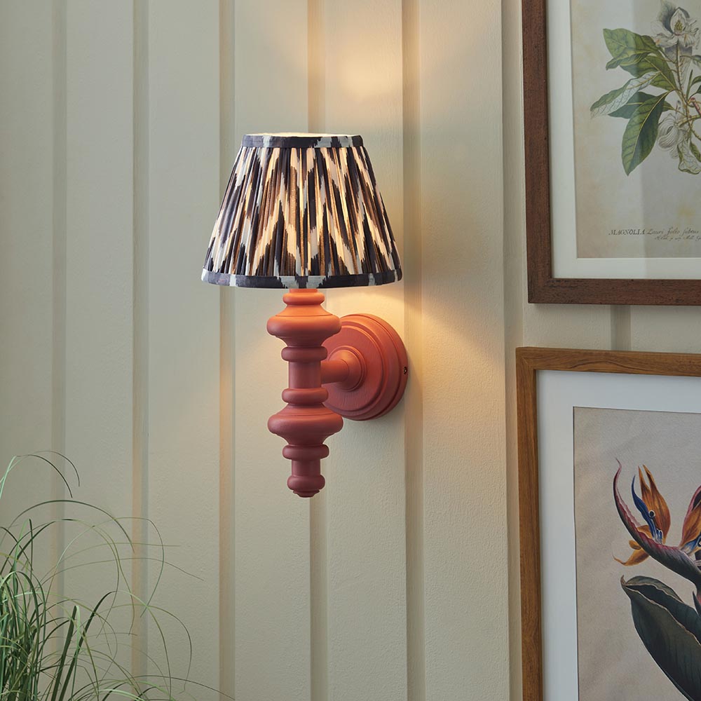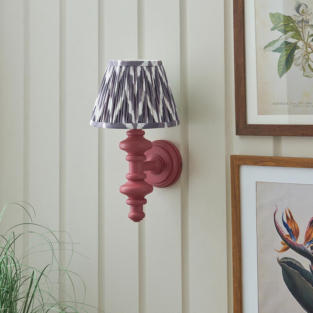 This unique wooden turned spindle wall light is inspired by past design styles with a fresh update. Painted in classic satin pink clay with a brass B22 lamp holder for that timeless authentic look. Paired with our stylish pearl grey 20cm Zigzag shade for a unique, classic style.