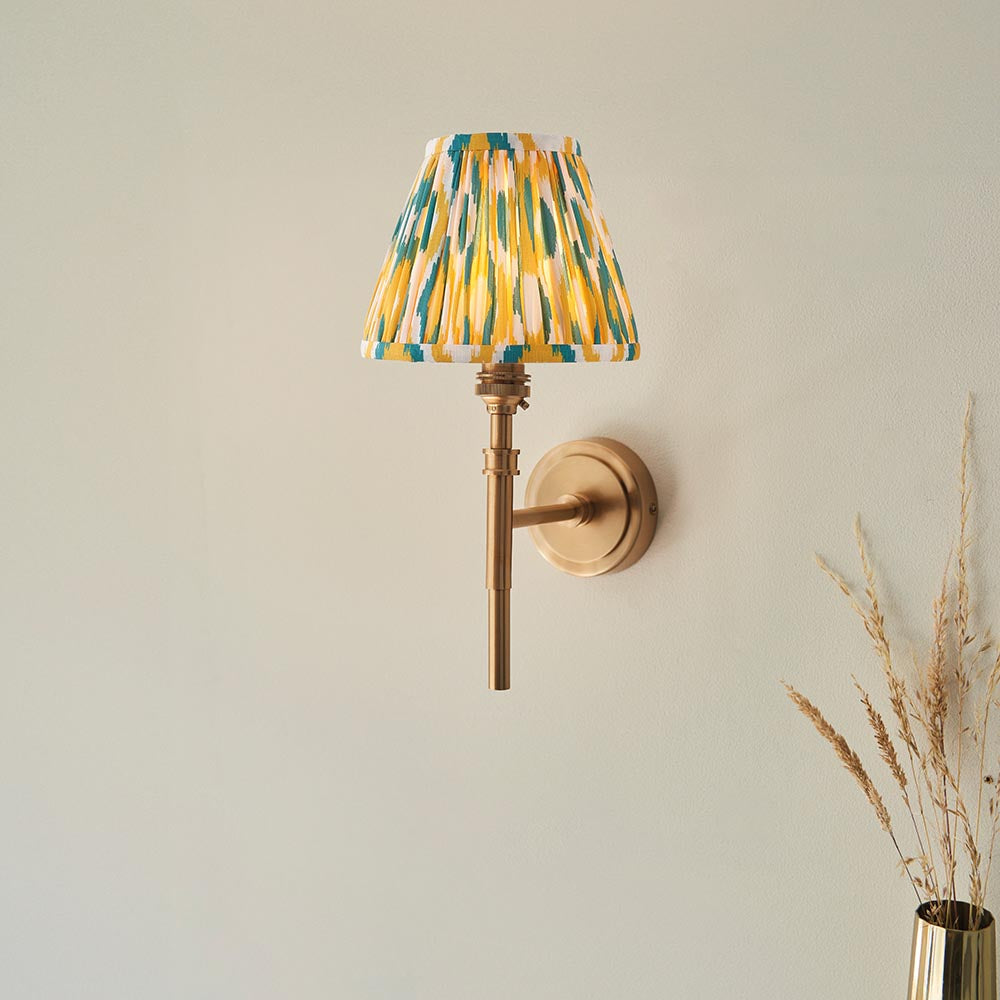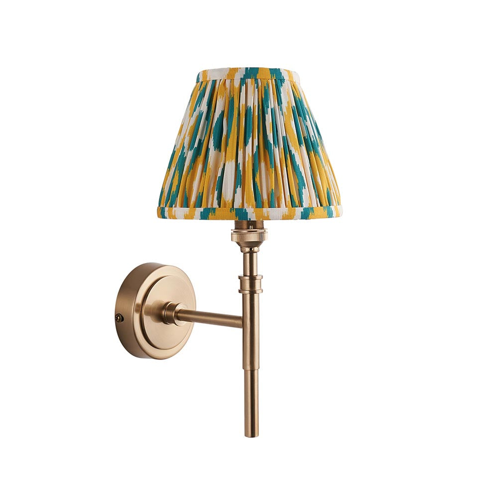 The timeless details of this wall light, finished in aged brass plate, with authentic brass B22 lamp holders make it the perfect addition to your home. Completed with our vibrant 16cm yellow & jade Ikat shade for a classic wall light to be proud of.