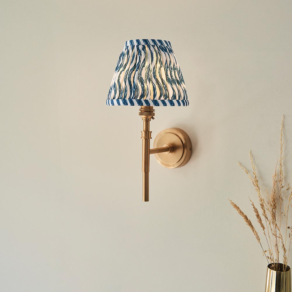 The timeless details of this wall light, finished in aged brass plate, with authentic brass B22 lamp holders make it the perfect addition to your home. Completed with our vibrant 16cm marlin blue Ripple shade for a classic wall light to be proud of.