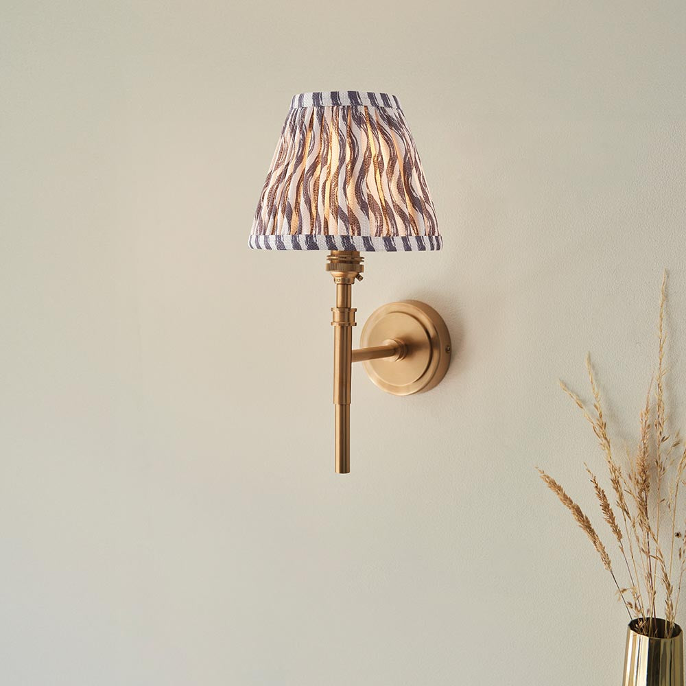 The timeless details of this wall light, finished in aged brass plate, with authentic brass B22 lamp holders make it the perfect addition to your home. Completed with our stylish 16cm pearl grey Ripple shade for a classic wall light to be proud of.