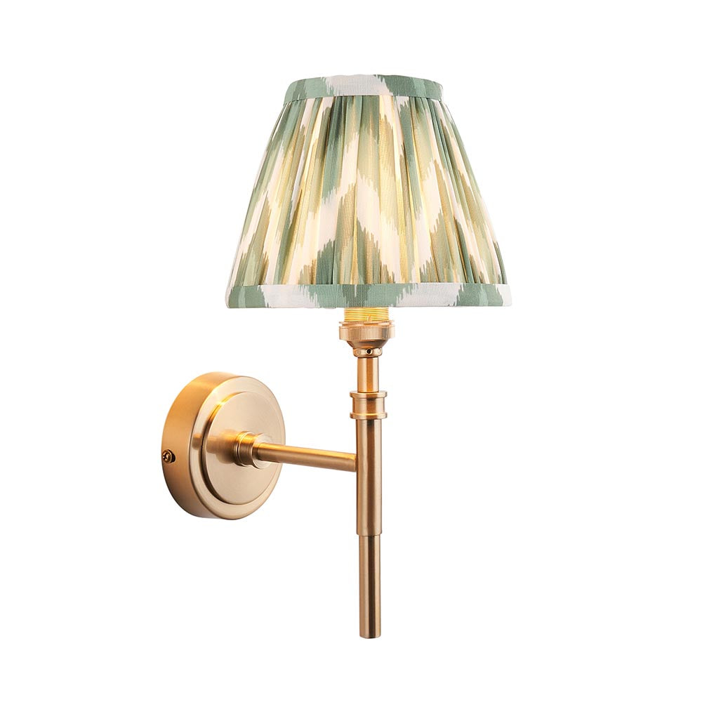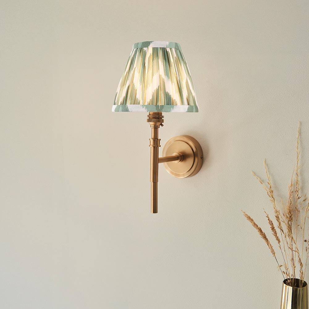 The timeless details of this wall light, finished in aged brass plate, with authentic brass B22 lamp holders make it the perfect addition to your home. Completed with our bold 16cm Cotswold green Zigzag shade for a classic wall light to be proud of.