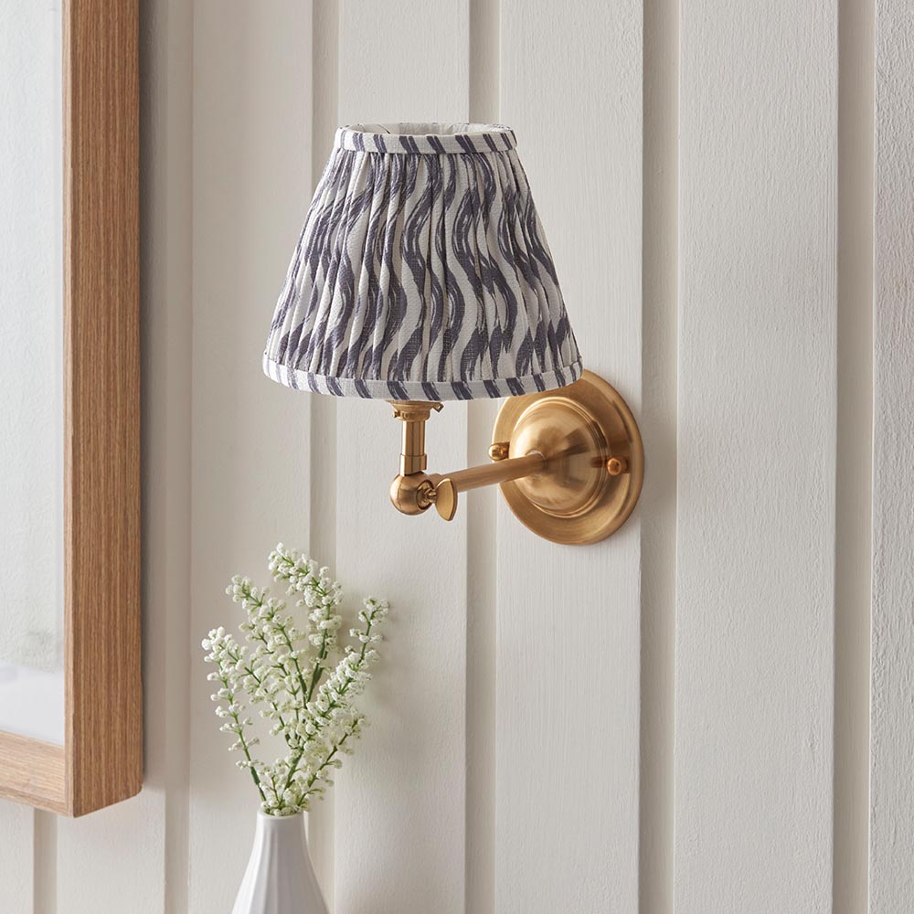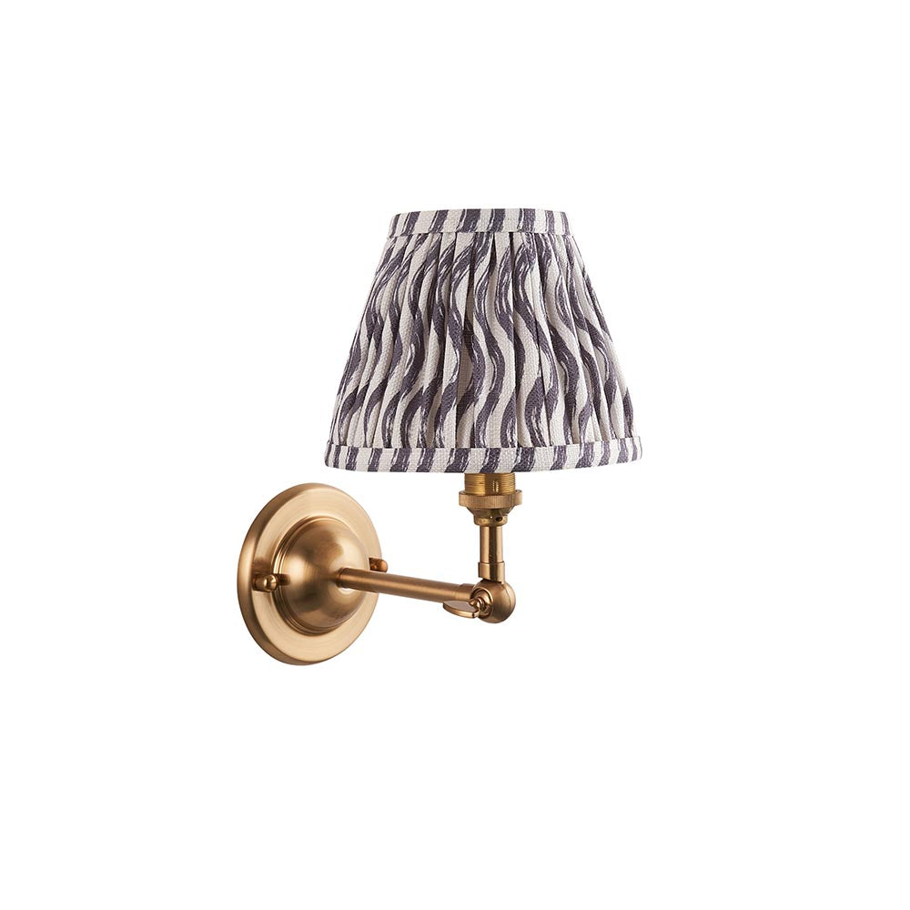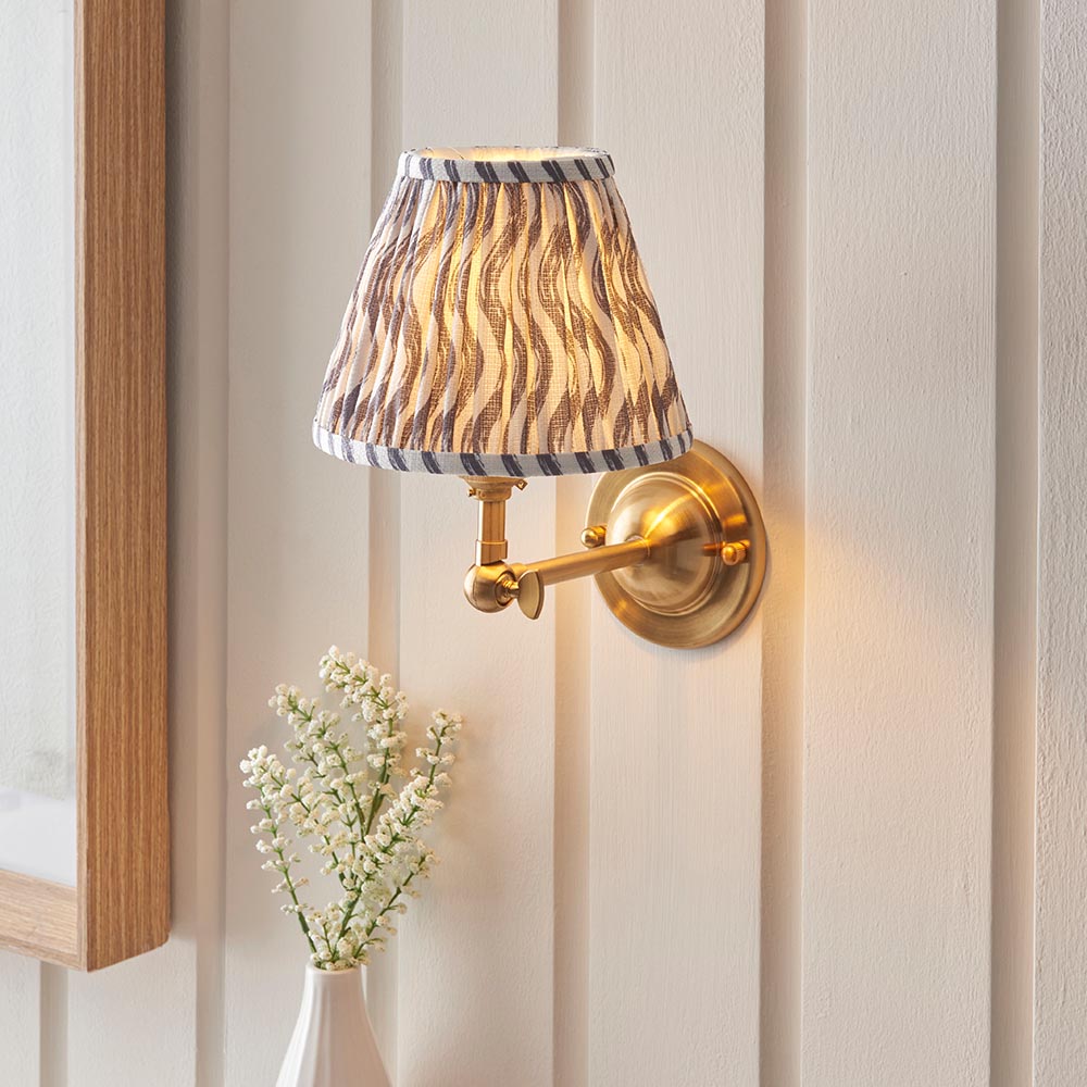 An ageless dome shaped wall light with simple linear arm featuring an adjustable knuckle to angle the wall light for that authentic classic look. Perfect for bedsides, hallways and lounge spaces. Finished in brushed aged brass; completed with our stylish pearl grey 16cm Ripple shade.