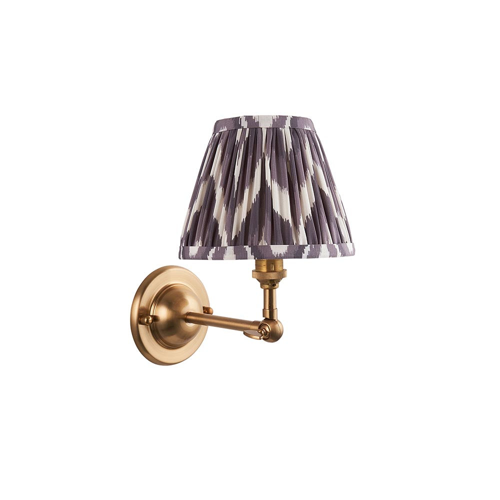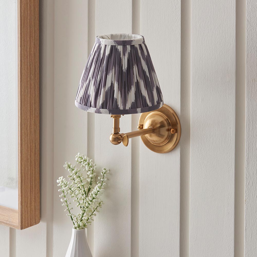 An ageless dome shaped wall light with simple linear arm featuring an adjustable knuckle to angle the wall light for that authentic classic look. Perfect for bedsides, hallways and lounge spaces. Finished in brushed aged brass; completed with our stylish pearl grey 16cm Zigzag shade.