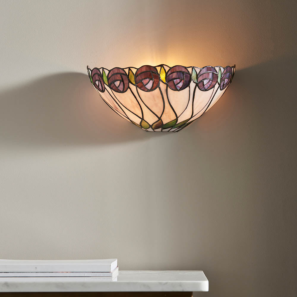 The Hutchinson wall light was inspired by designer Charles Rennie Mackintosh and mimics his famous rose design. Dimmable and compatible with LED lamps