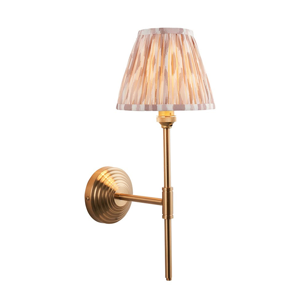 A multiple stepped wall light with an understated T shape arm. Perfect for many areas of your home, finished in brushed aged brass. Paired with our natural 16cm Ikat shade for a classic look.
