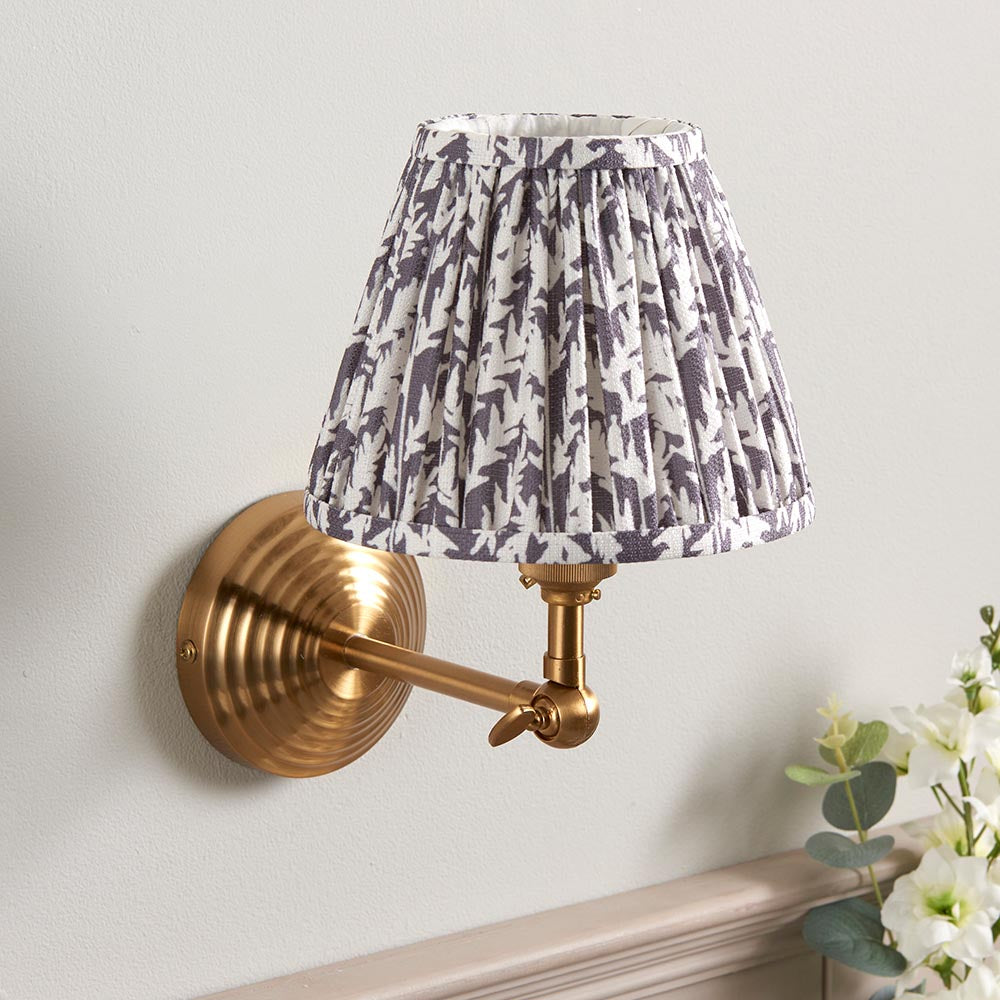 A multiple stepped wall light with a simple linear arm featuring an adjustable knuckle to angle the wall light for that authentic classic look. Perfect for bedsides, hallways and lounge spaces. Finished in brushed aged brass and completed with our subtle pearl grey 16cm Leaf shade.