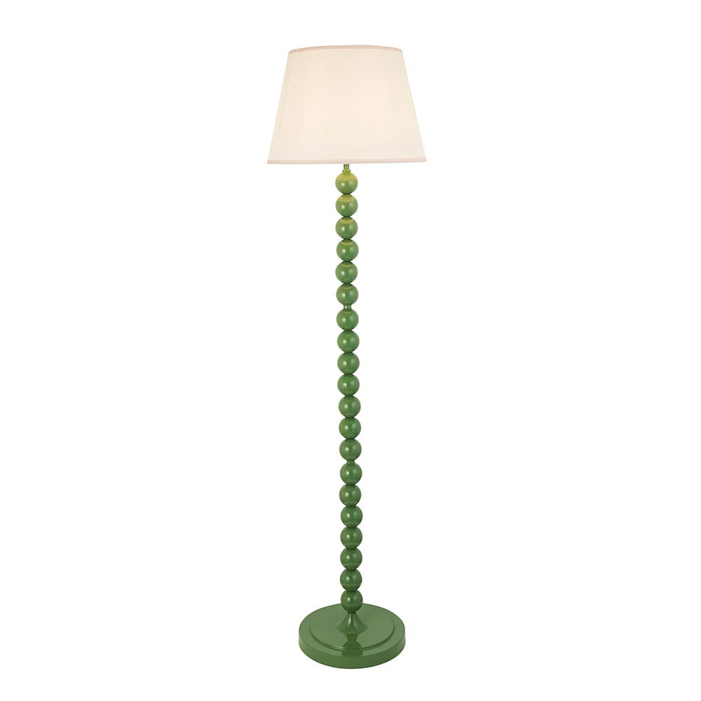 Add some colour to your home with this playful floor light. Multiple stacked metal spheres finished in gloss Cotswold green paint with an E27 lamp holder, in-line foot switch and colour matched fabric flex. Paired with our vintage & almond white 40cm Ivy shade to complete this perfect colour addition to your home.