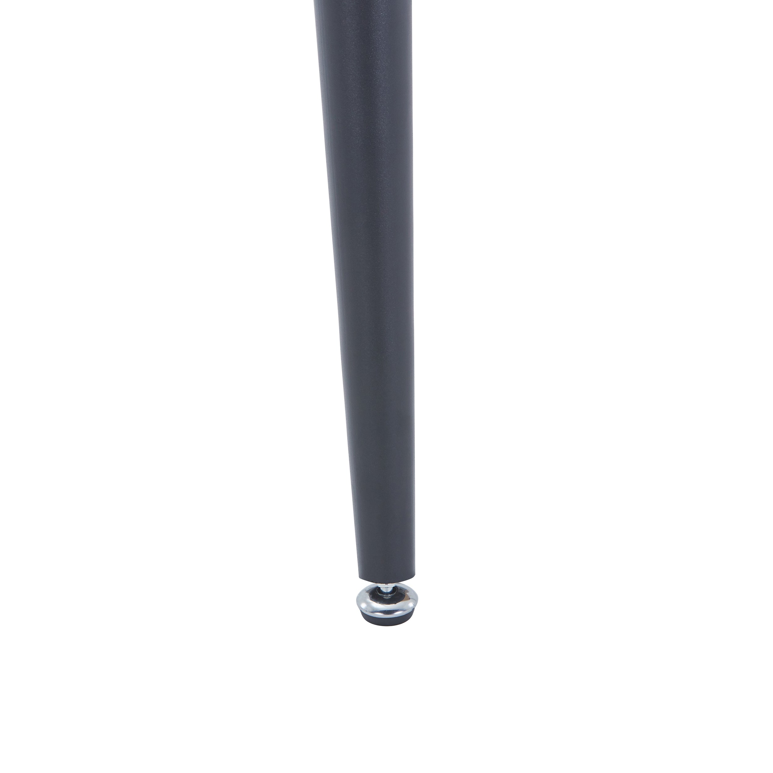 Our Aspen large Oak woodgrained effect rectangular dining table features a gently tapered shape and soft edge design. In addition to being stylish its tough and easy to clean. The table top is firmly fixed to each leg which is precision manufactured from tapered tubular steel with a black matt paint and built in adjusters for uneven floors. Ideal for the growing family and can comfortably accommodate 4 or 6 chairs depending on your seating selection. W120 x D80 x H75 cm