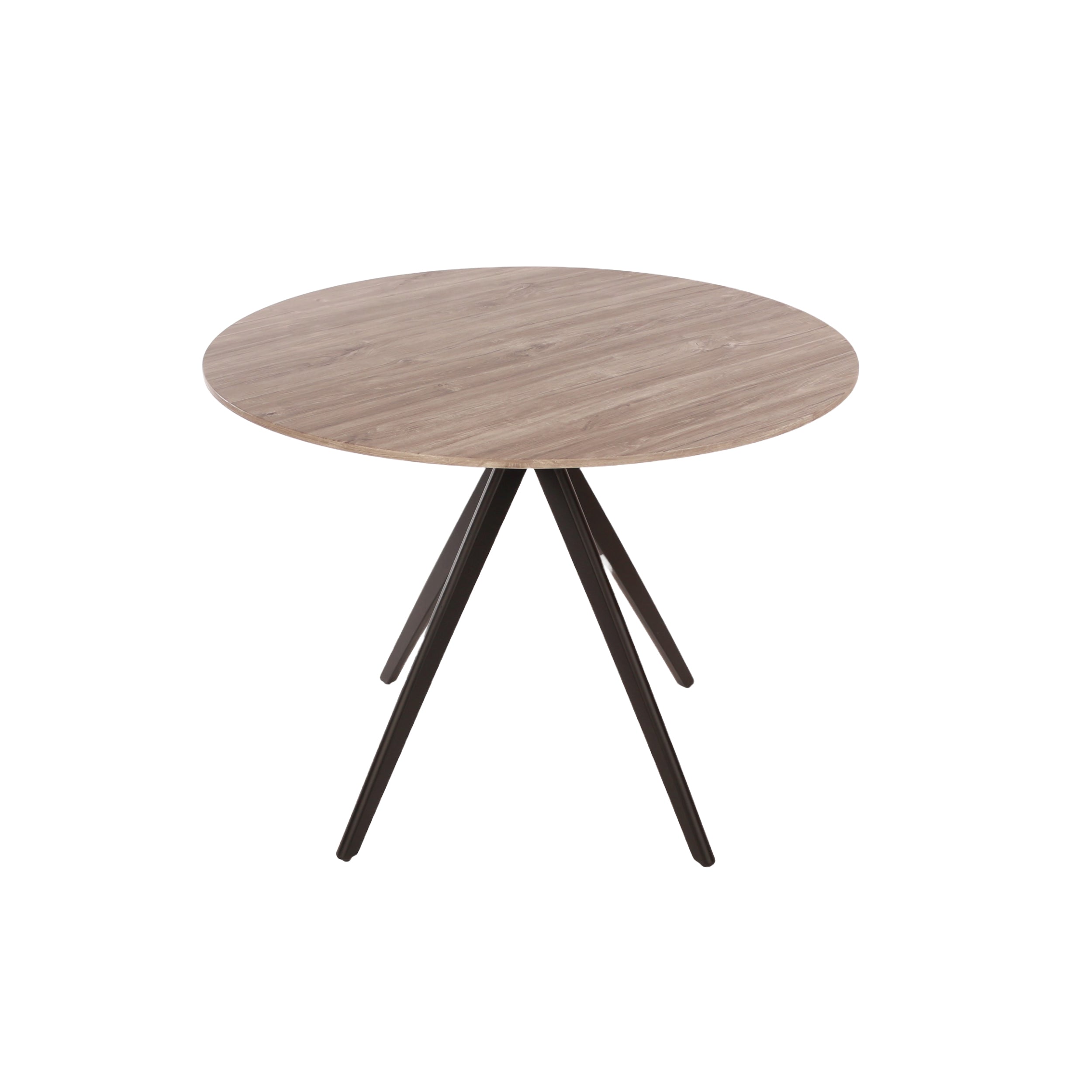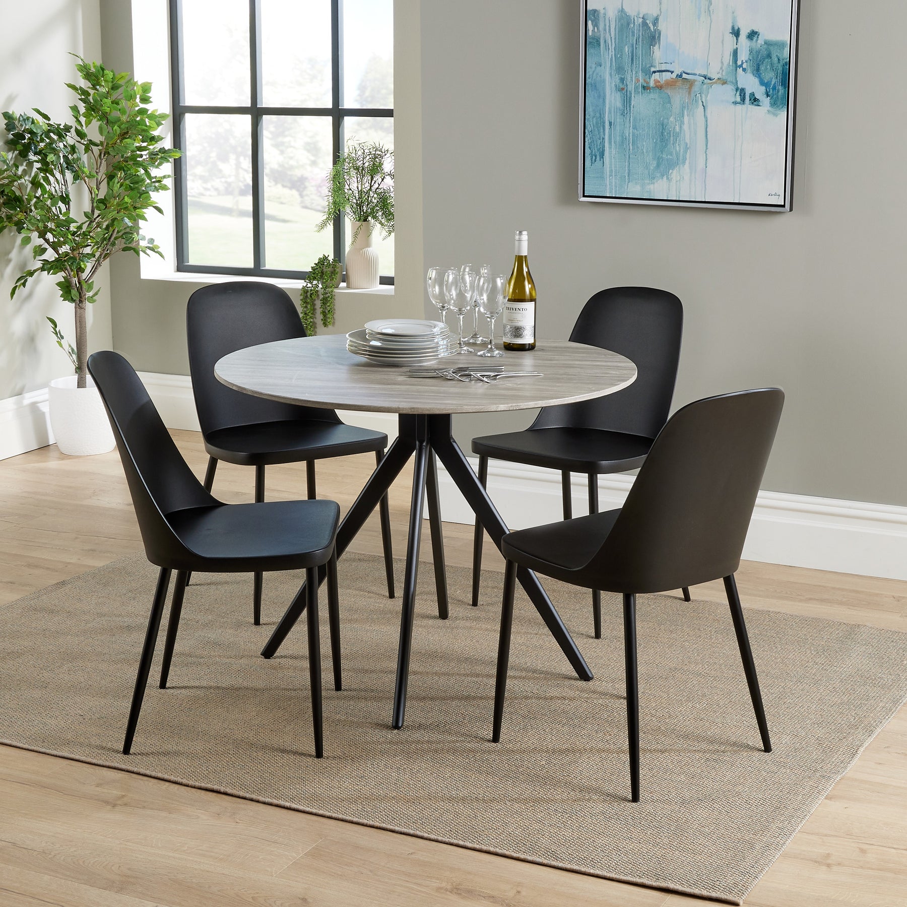 This Aspen round dining or kitchen table features a soft rounded edge design with an easy to clean grey oak textured effect finish. Each leg is precision manufactured from tubular steel with a black matt paint and built in adjusters for uneven floors. The tabletop is 100cm diameter and can sit 4 people comfortably, ideal for having your family meals or entertaining friends. W100 x D100 x H75 cm