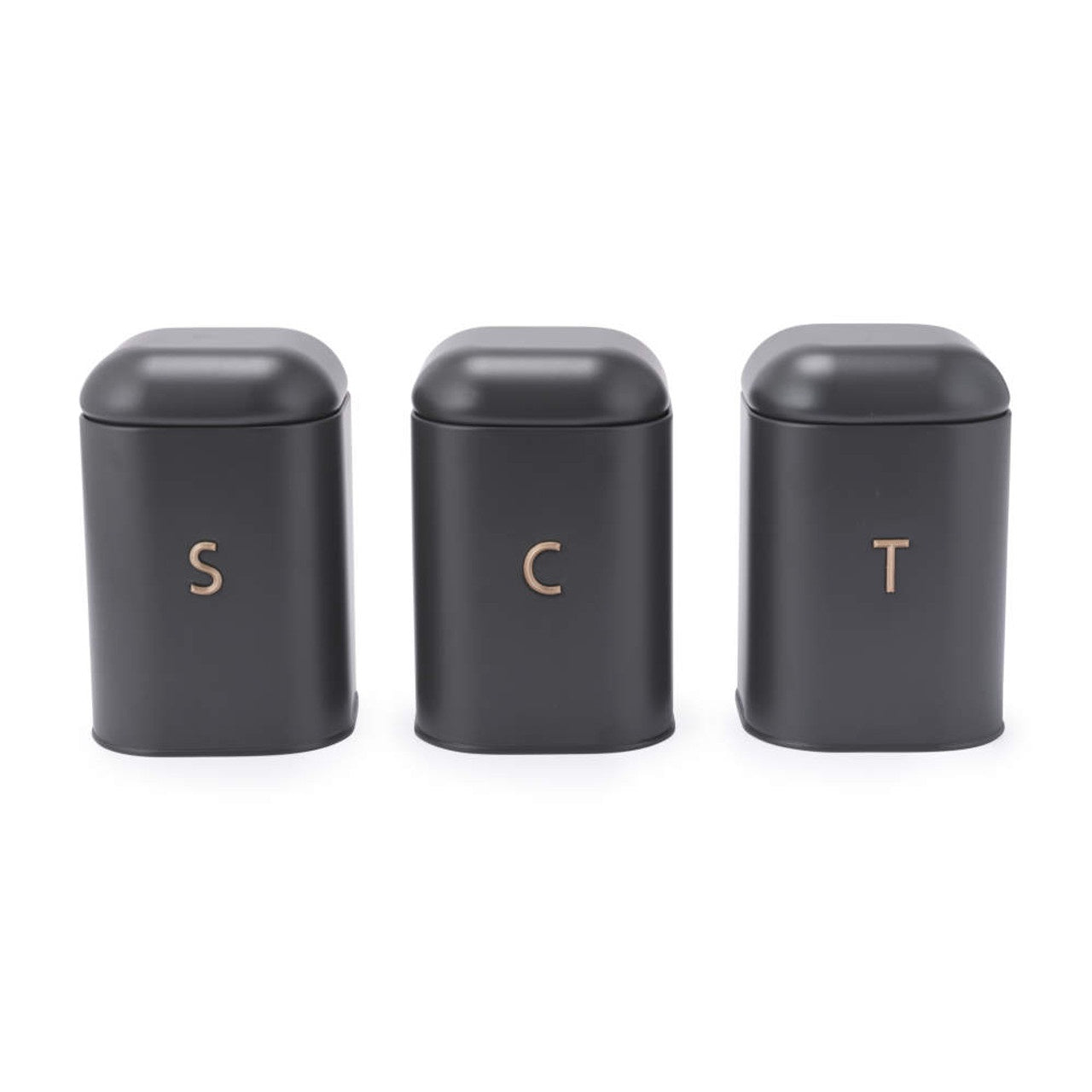 Salter Pebble 3-Piece Canister Set - Charcoal with Brass Effect Letters
