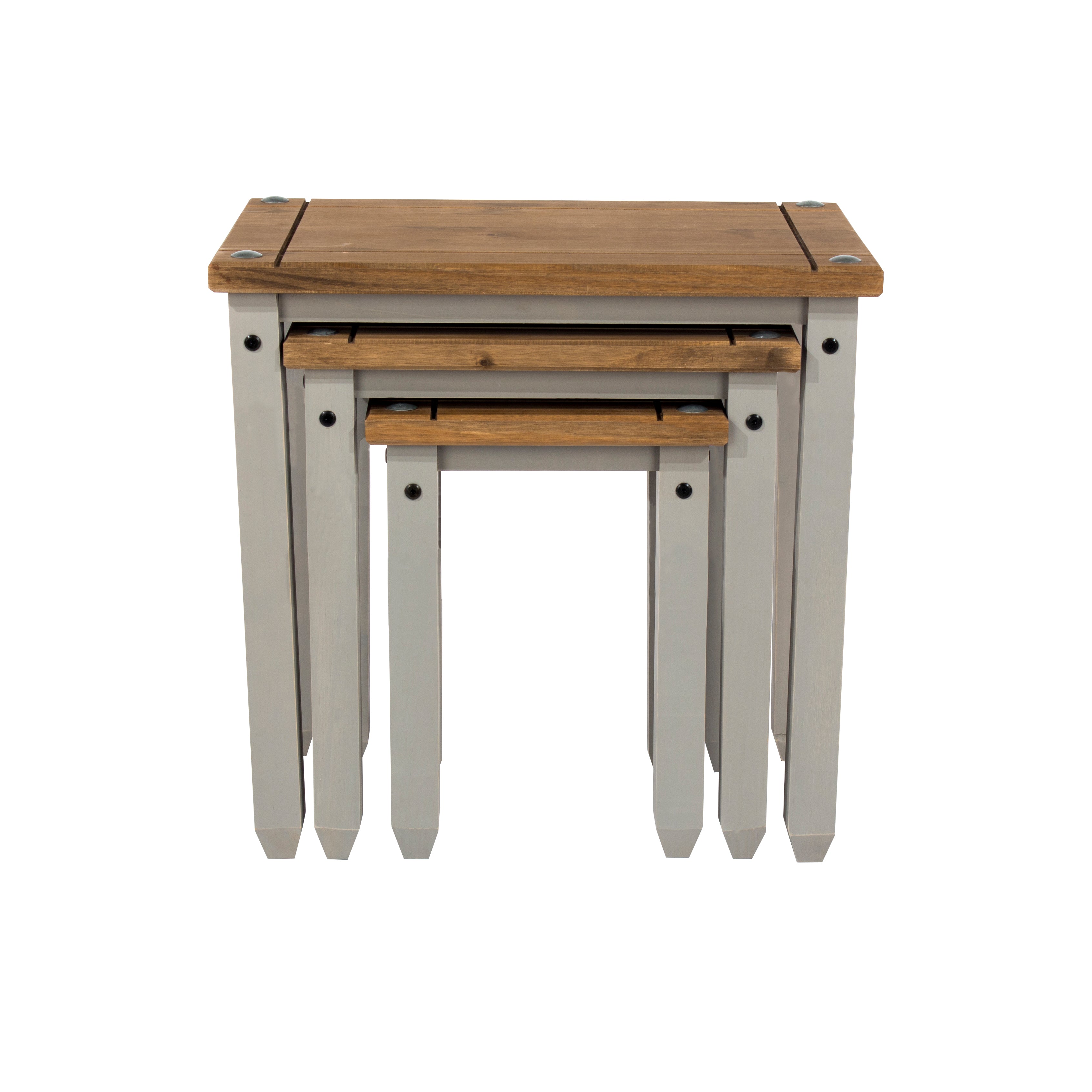 Corona Grey Nest Of Tables Grey Wax Antique Waxed Pine (Self Assembly) (DHD)